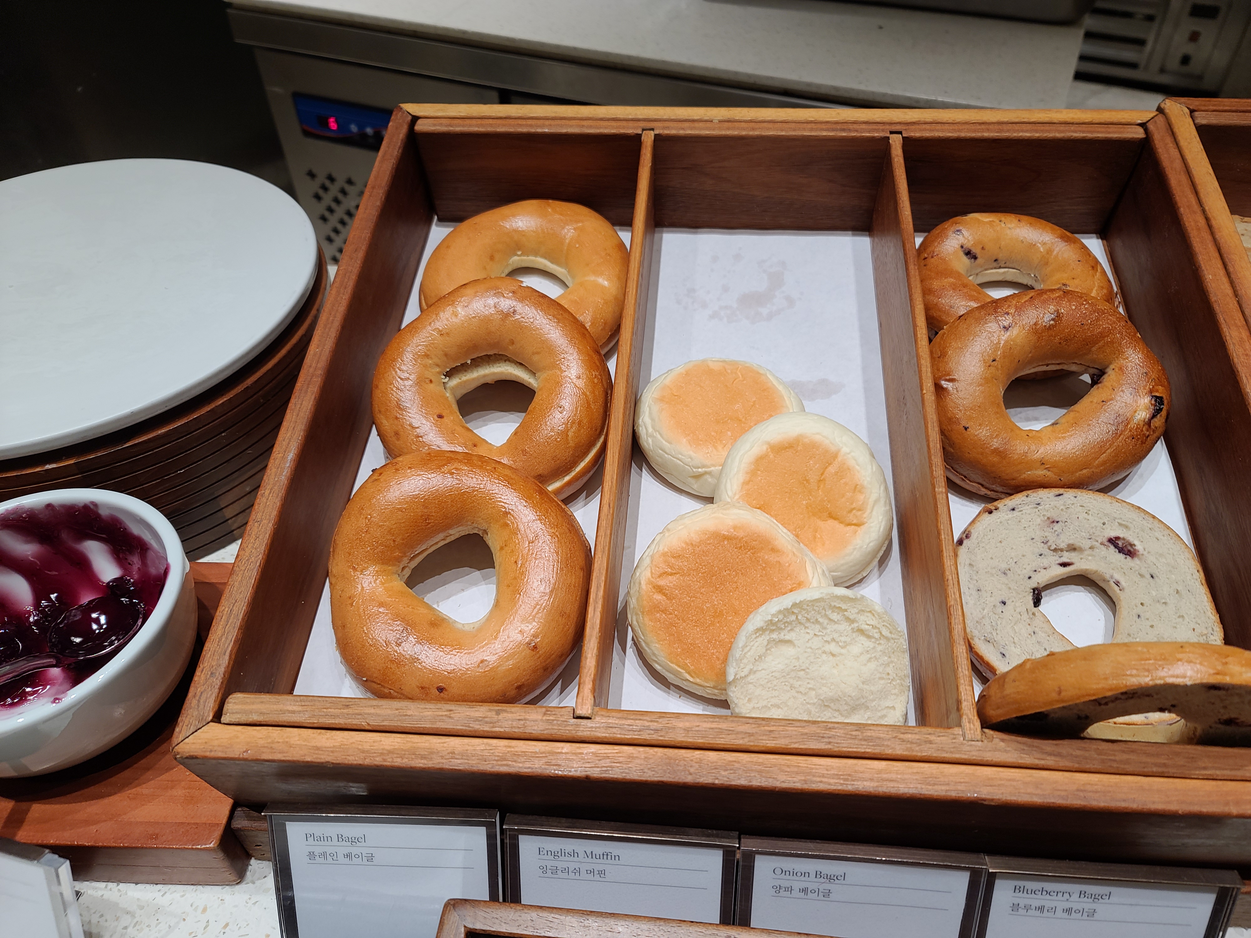 베이글, 응글리쉬 머핀 등과 같은 기본적인 빵이 있습니다.