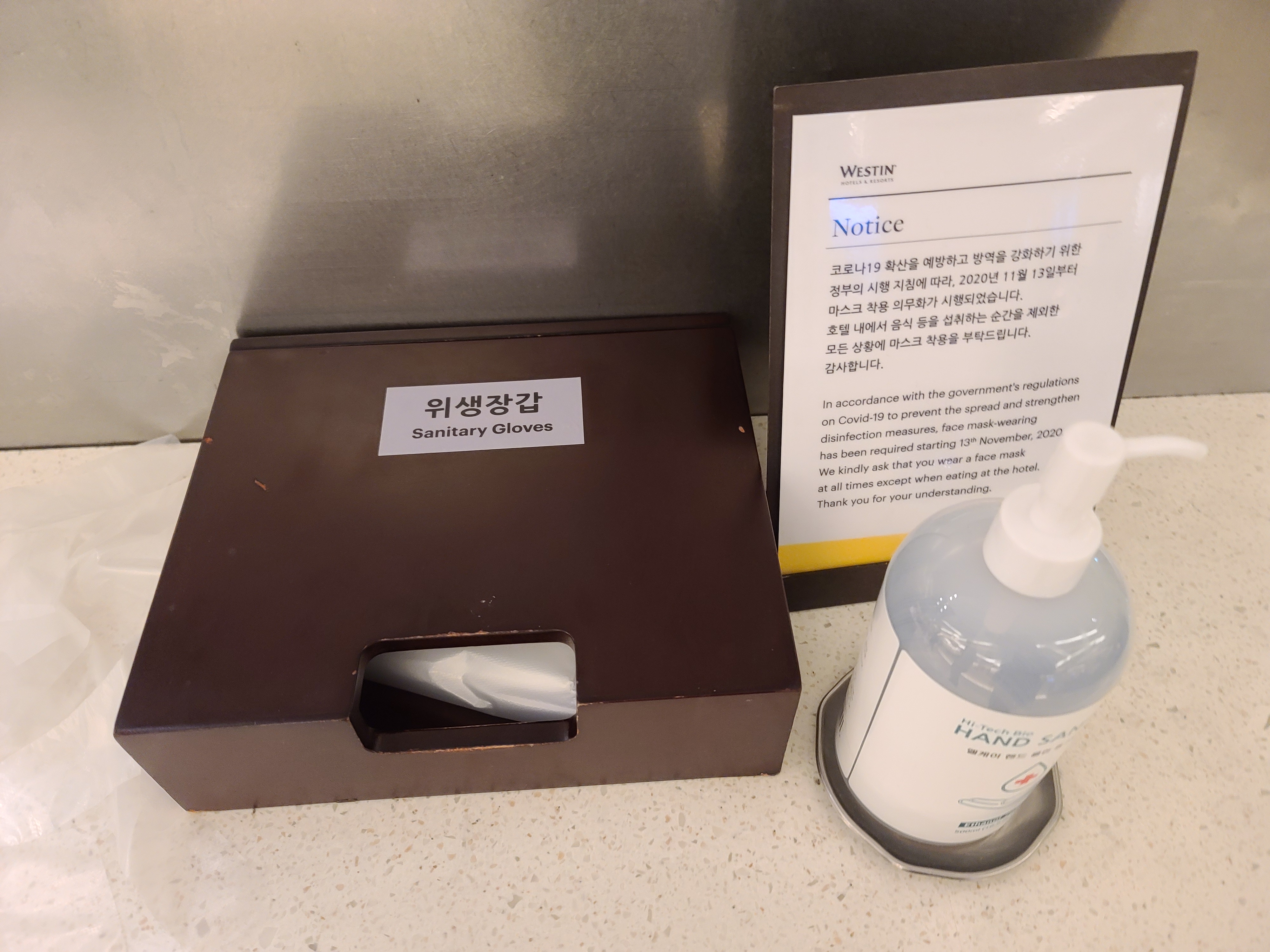 가장 먼저 음식이 아닌 1회용 위생장갑이 저를 반겨줍니다.