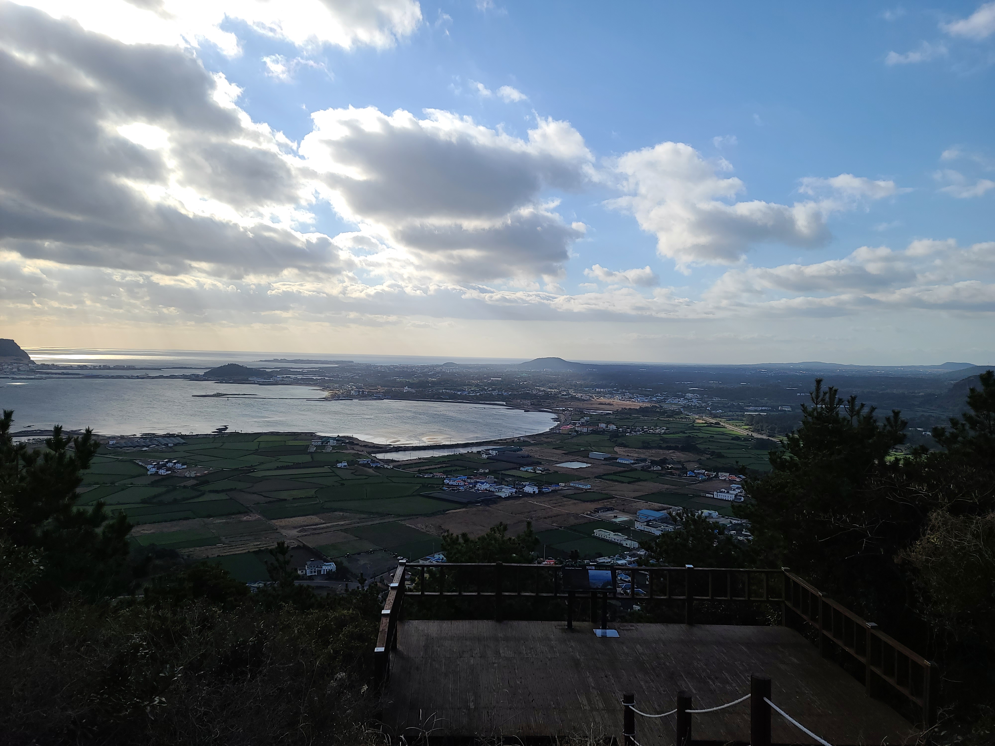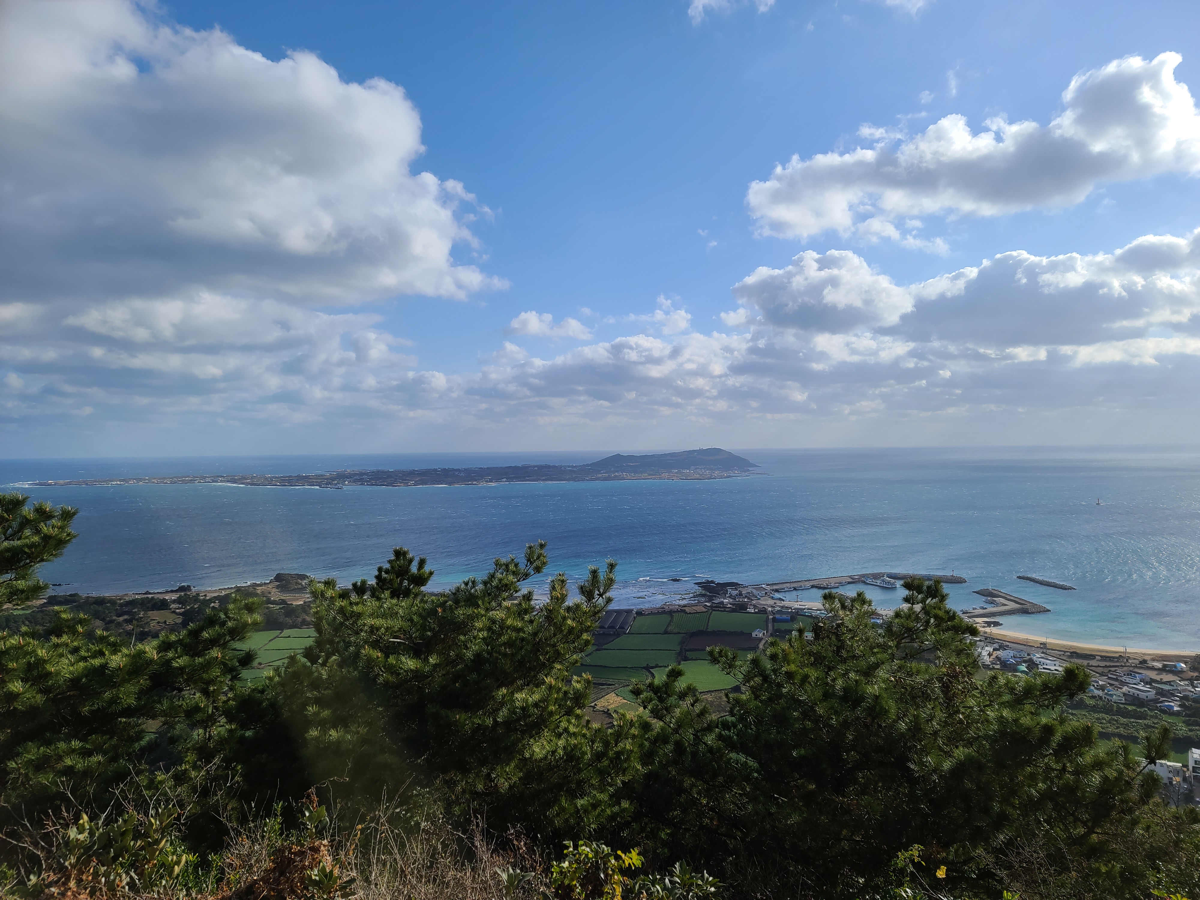 성산일출봉과 우도가 한 눈에 내려다보입니다.