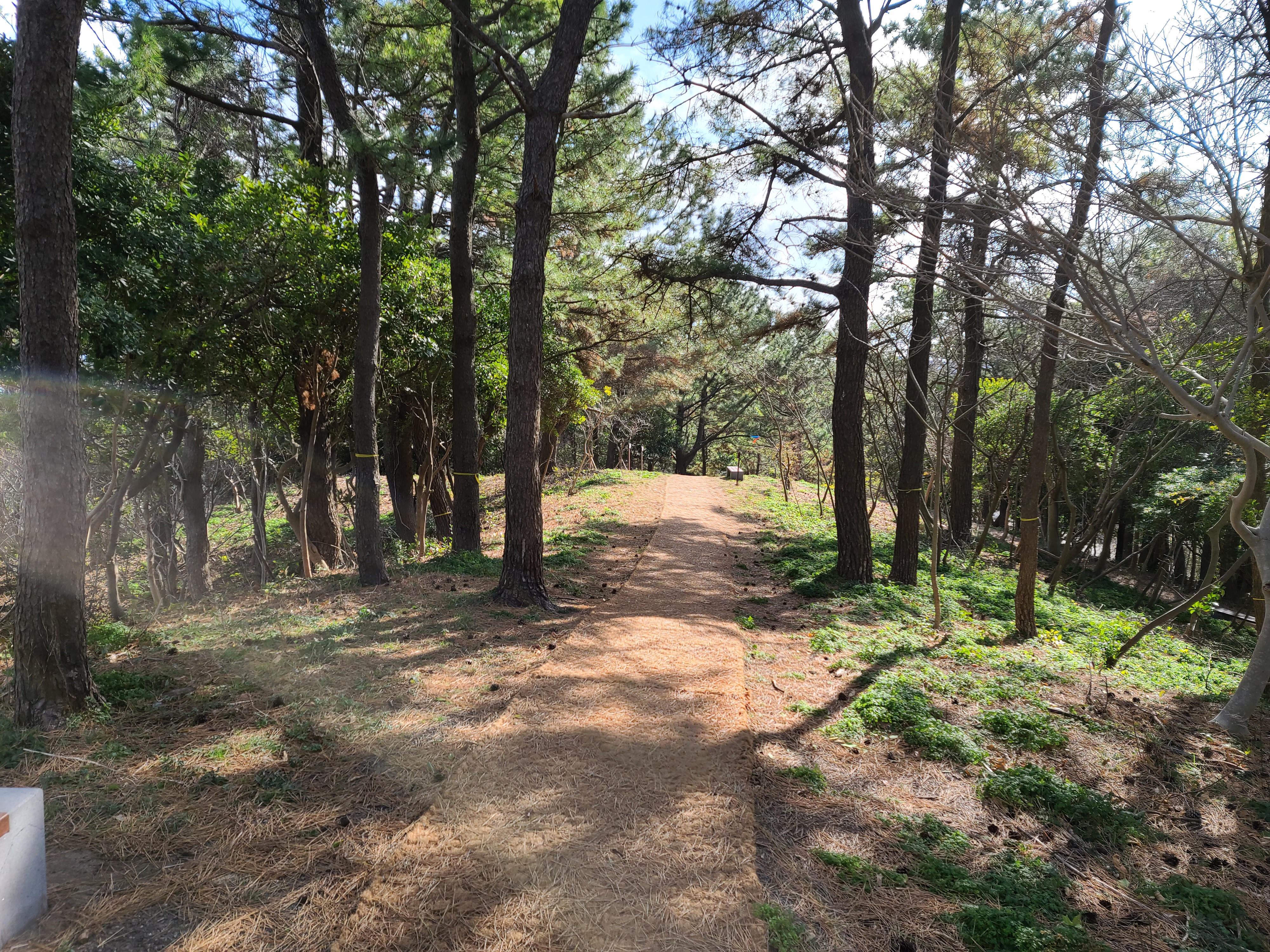3분 정도면 올라갈 수 있는 낮은 동산인데, 올라가면 바다가 살짝 내려다 보입니다.