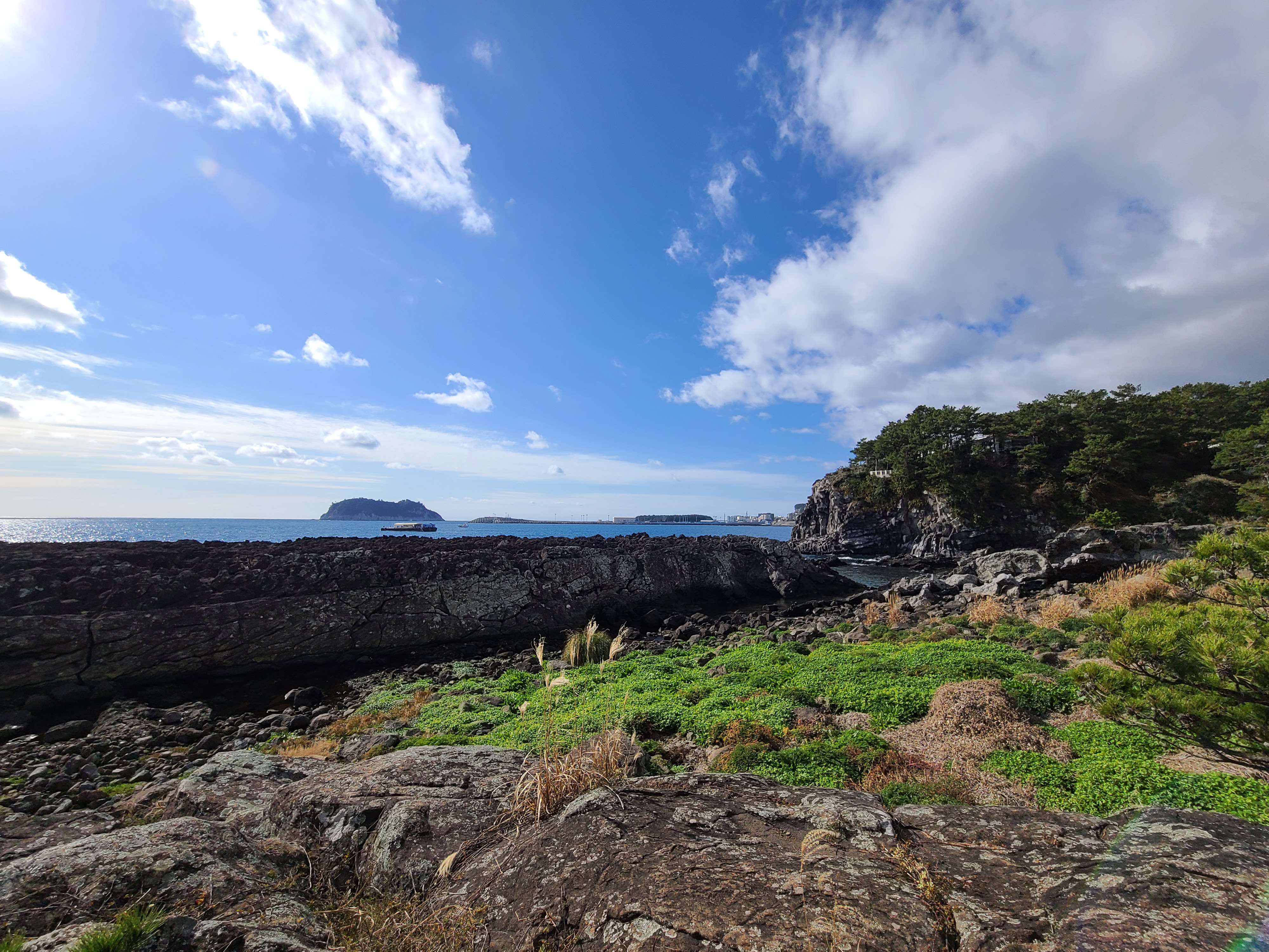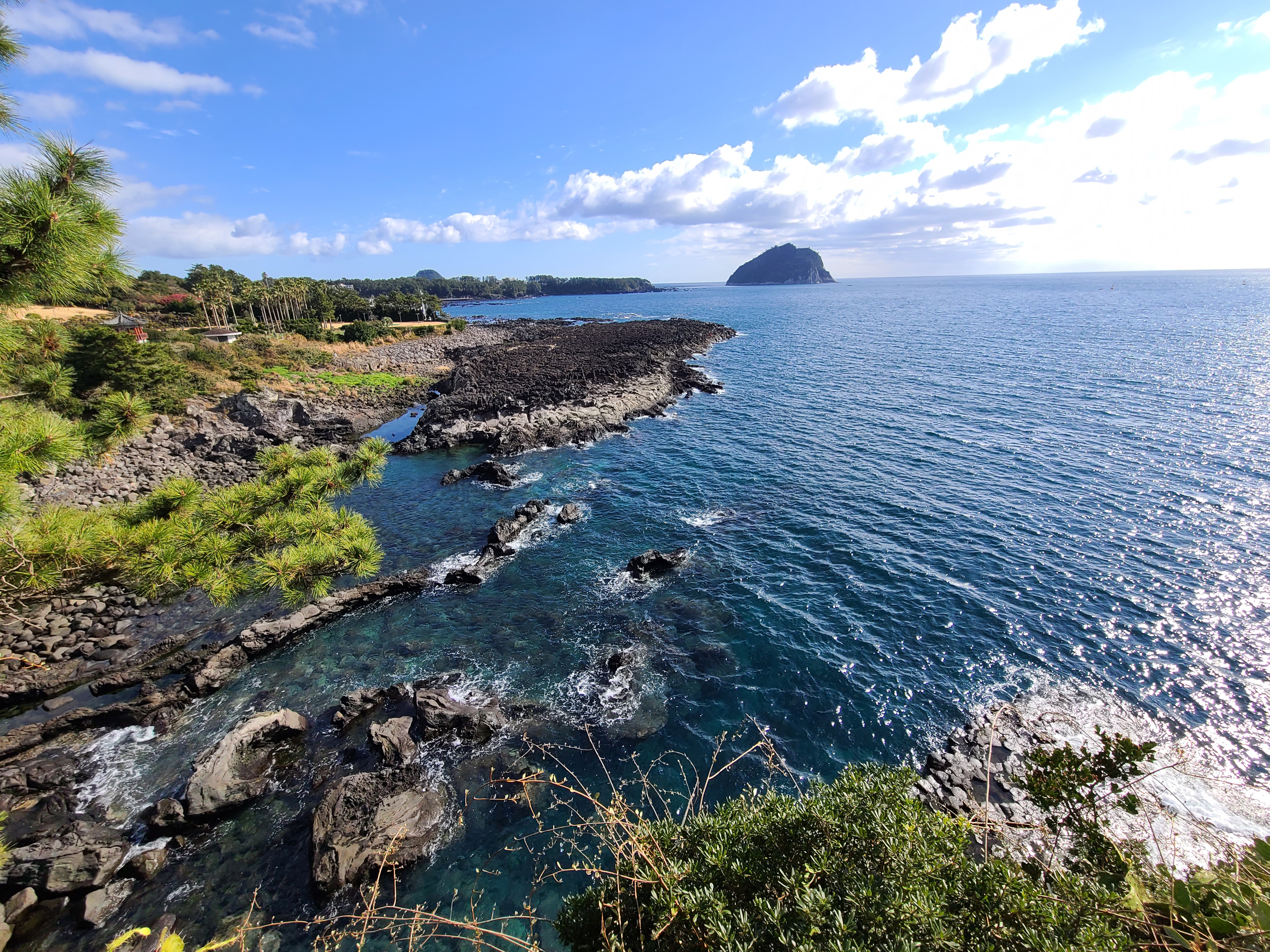 섶섬을 끼고 있는 바다 풍경이 예쁩니다.