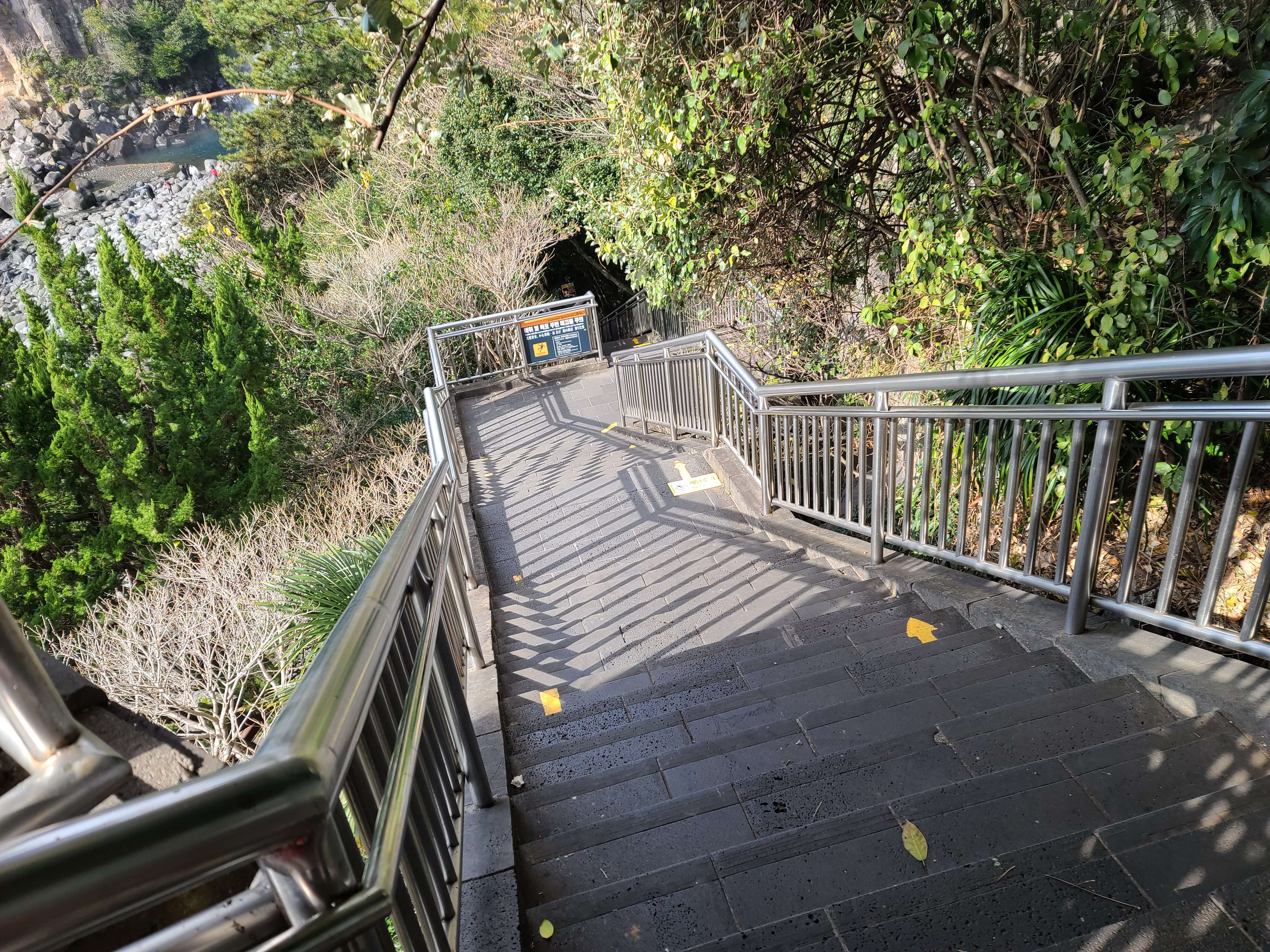 정방폭포 안쪽까지 올레길 6코스로 이어져 있는 것은 아니지만, 5분 정도만 계단을 내려가면 정방폭포를 볼 수 있어서 내려가봤습니다.