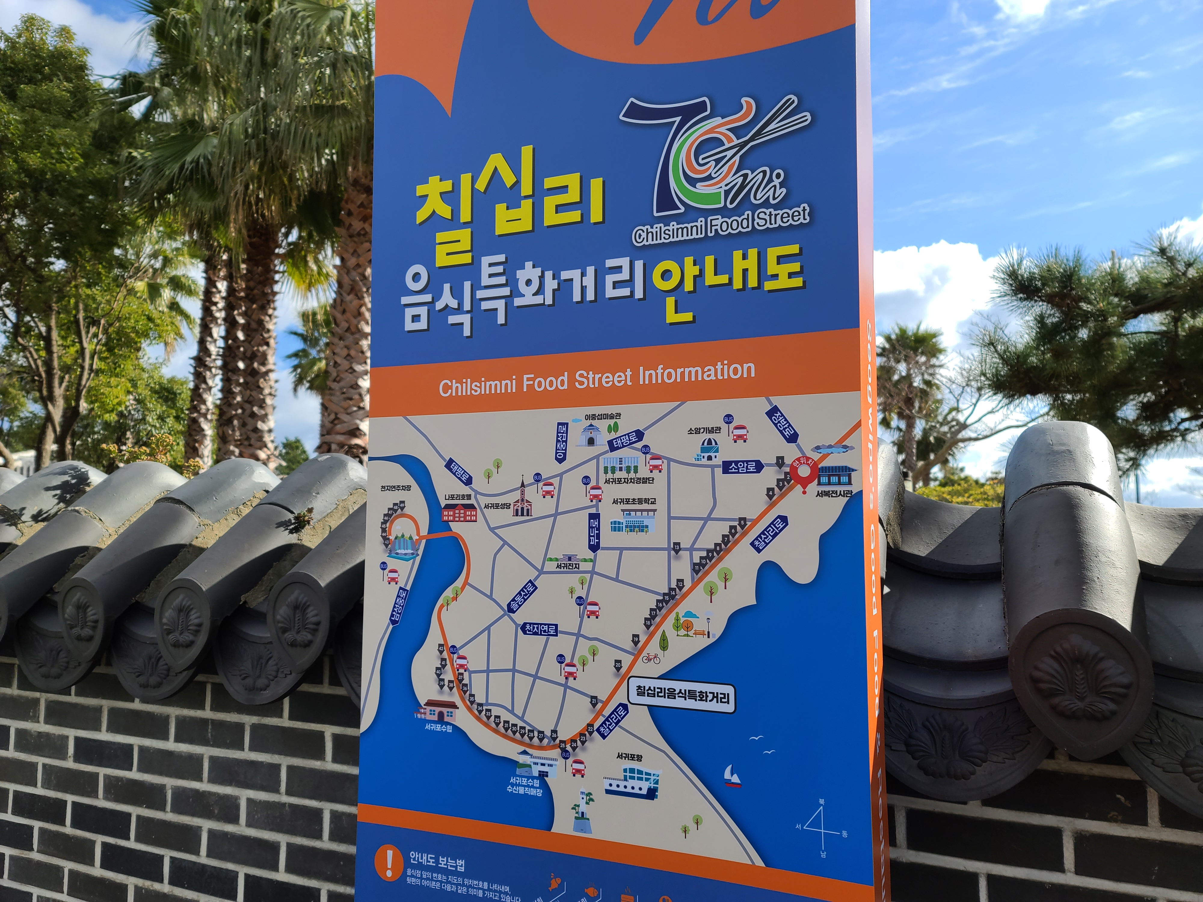 이제 정방폭포를 빠져나오시면 칠십리 음식특화거리가 나옵니다.