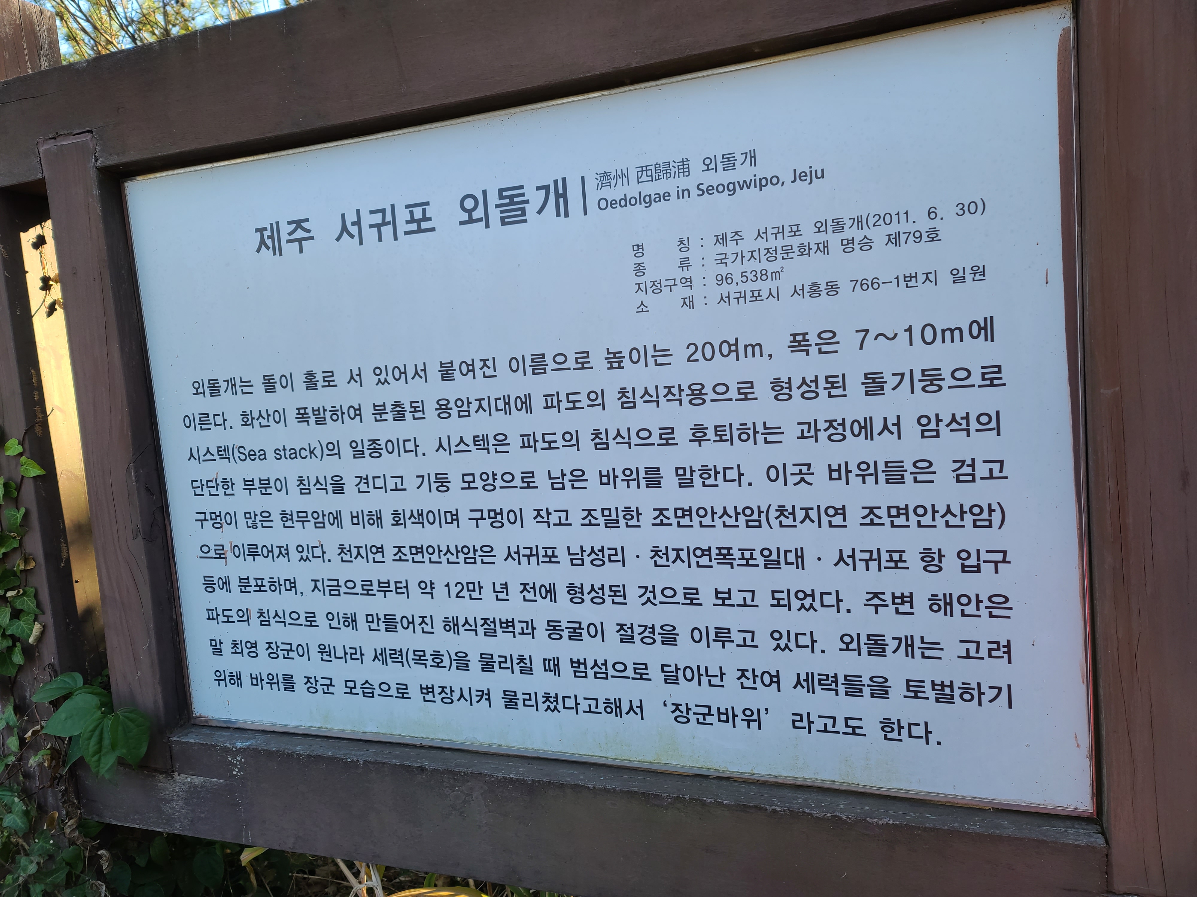파도의 침식작용으로 형성된 돌기둥으로 시스텍의 일종라고 하네요.