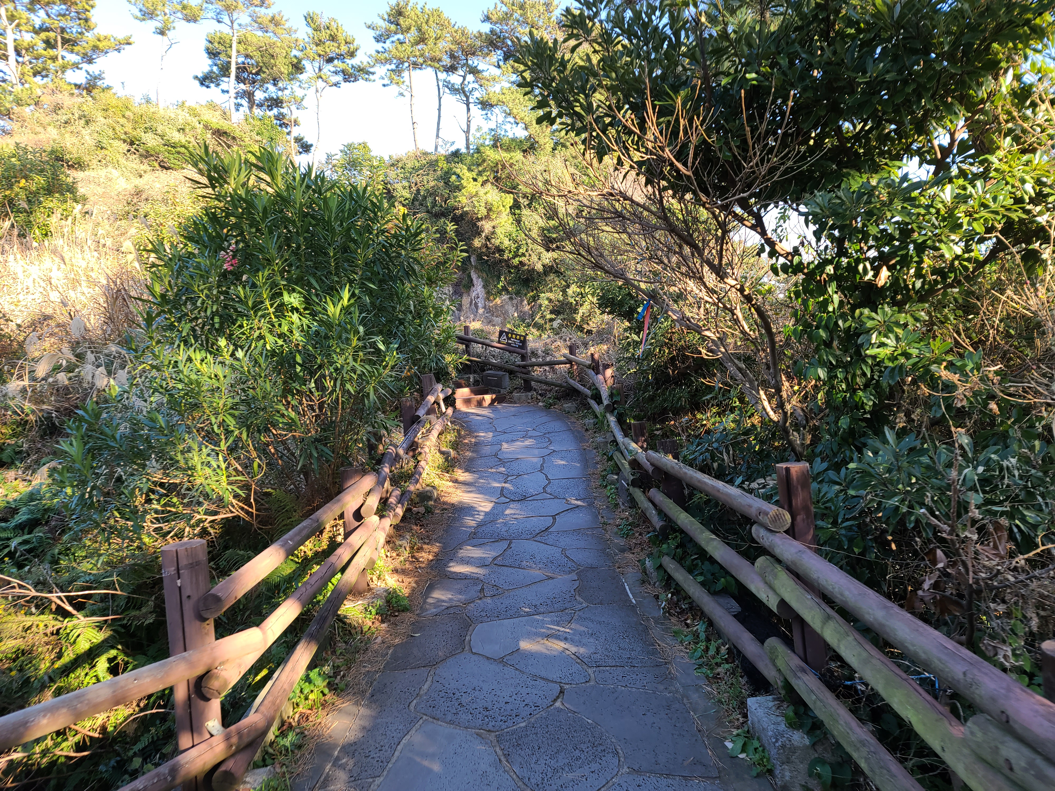 길을 따라 가시다보면 외돌개를 보기 전에 화강암 절벽으로 들어갈 수 있는 길이 있습니다.