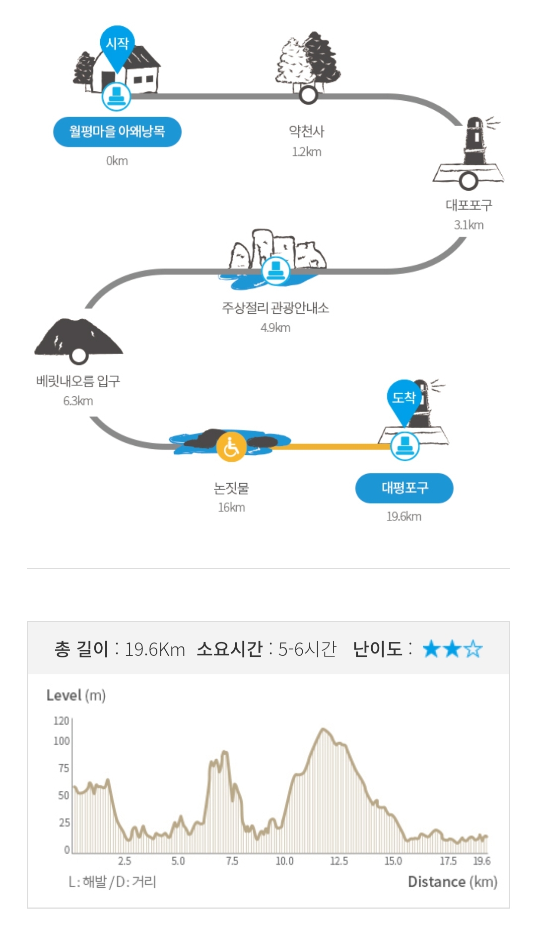 또한 올레길 8코스의 총 길이는 19.6km이며 시간은 약 5~6시간이 소요됩니다.