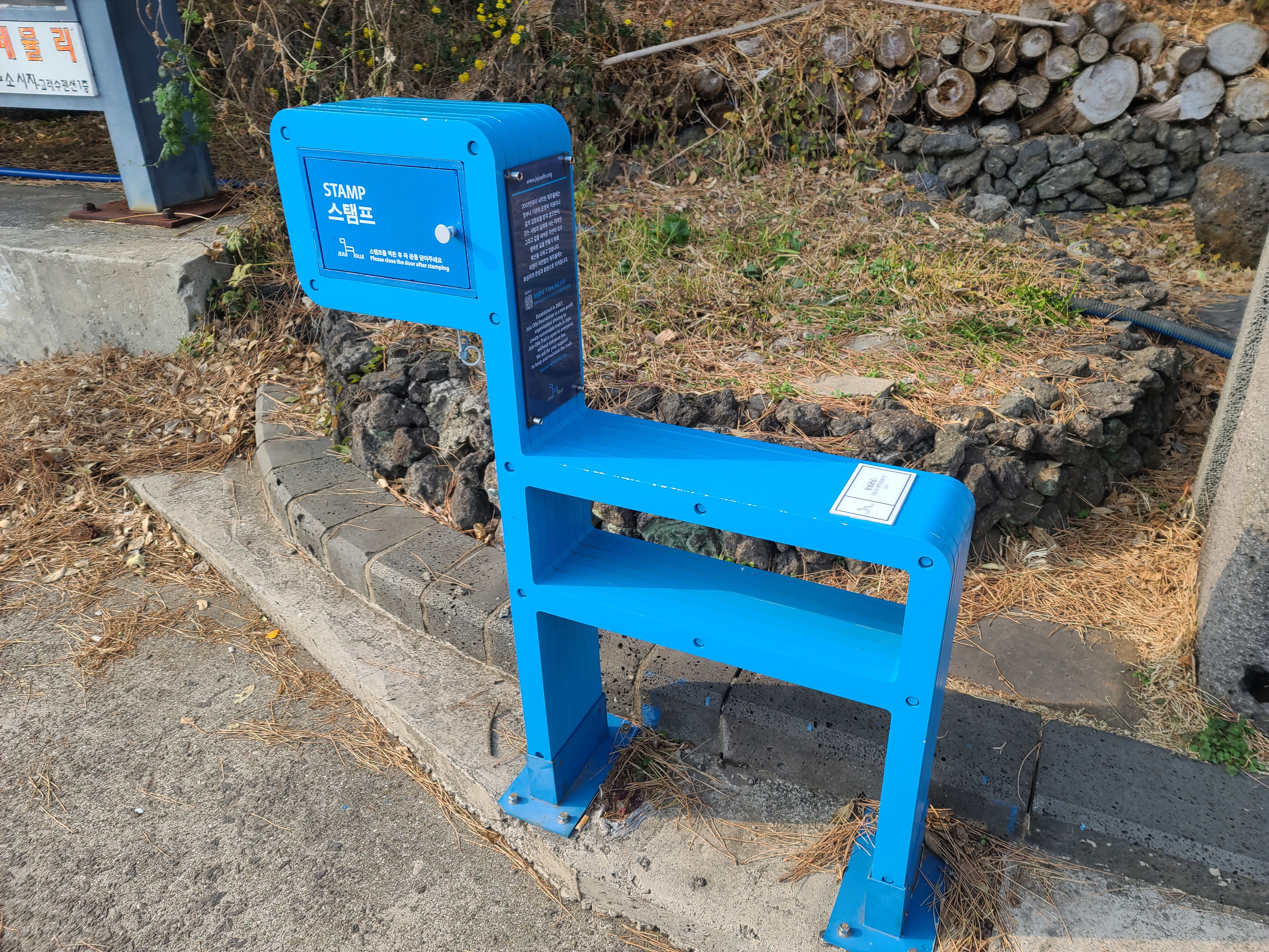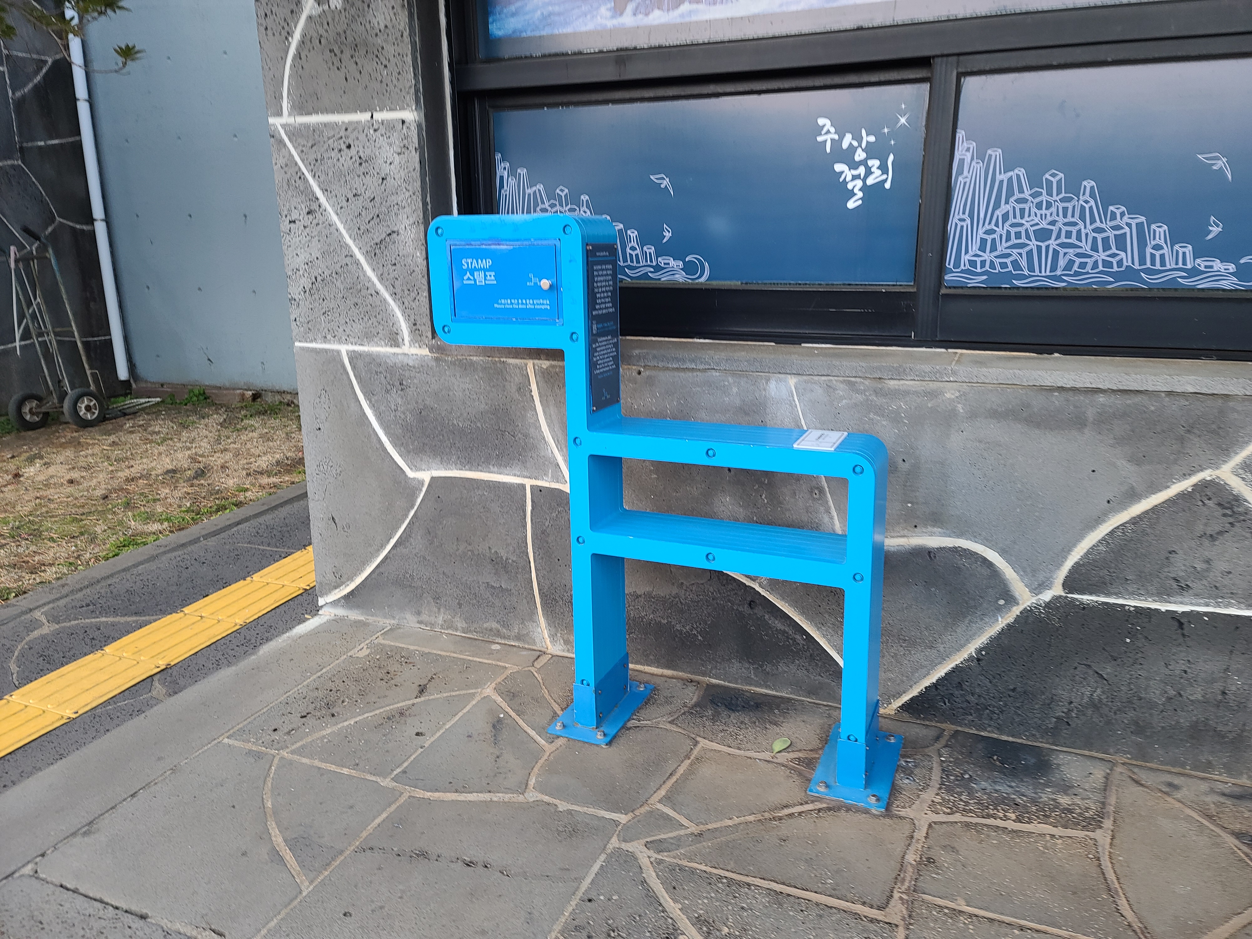 주상절리 매표소 바깥쪽 화장실(대포주상절리대 관리사무실) 앞에는 올레길 8코스 중간 스템프 찍는 곳이 있습니다.