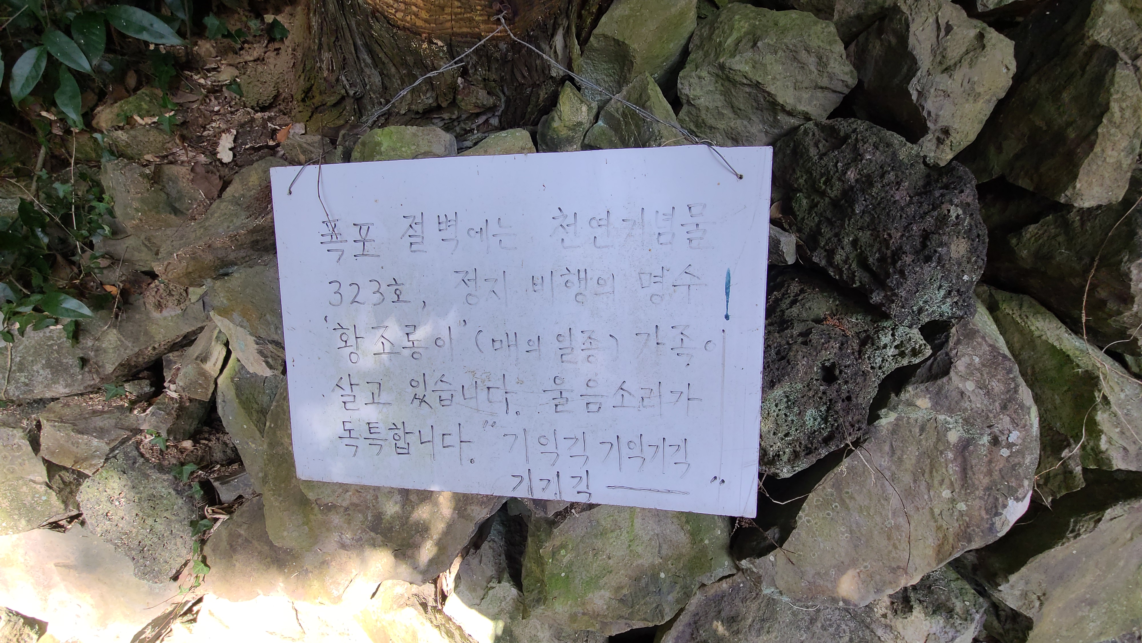 그리고 엉또폭포에는 천연기념물 323호인 황조롱이 가족이 살고있다고 합니다.