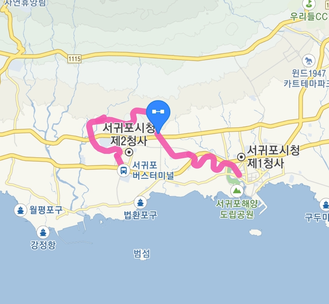 제주 올레길 7-1코스의 종점인 서귀포버스터미널이 나옵니다.