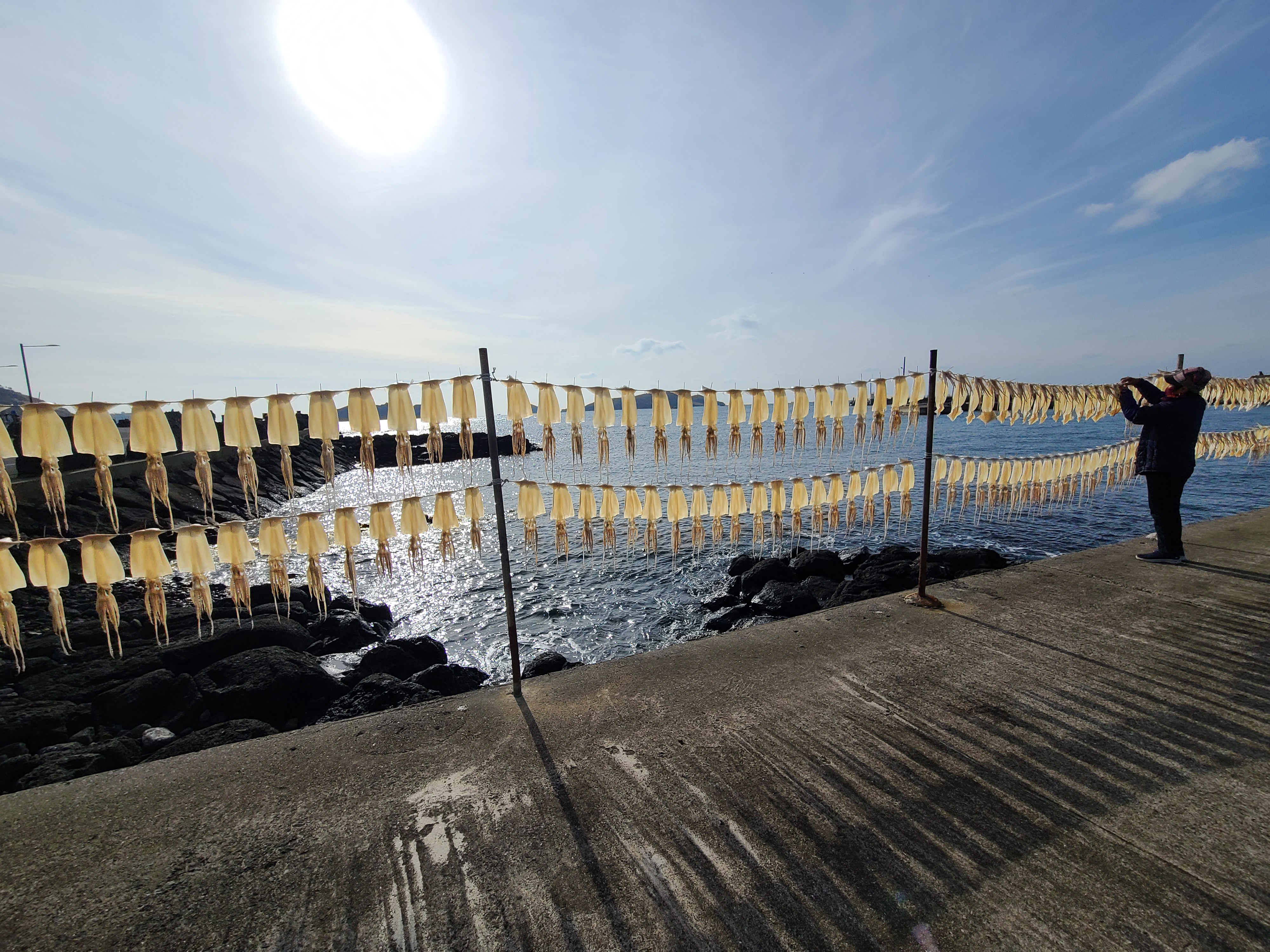 위와 같이 오징어가 건조되고 있는 용수리포구에 도착하면,