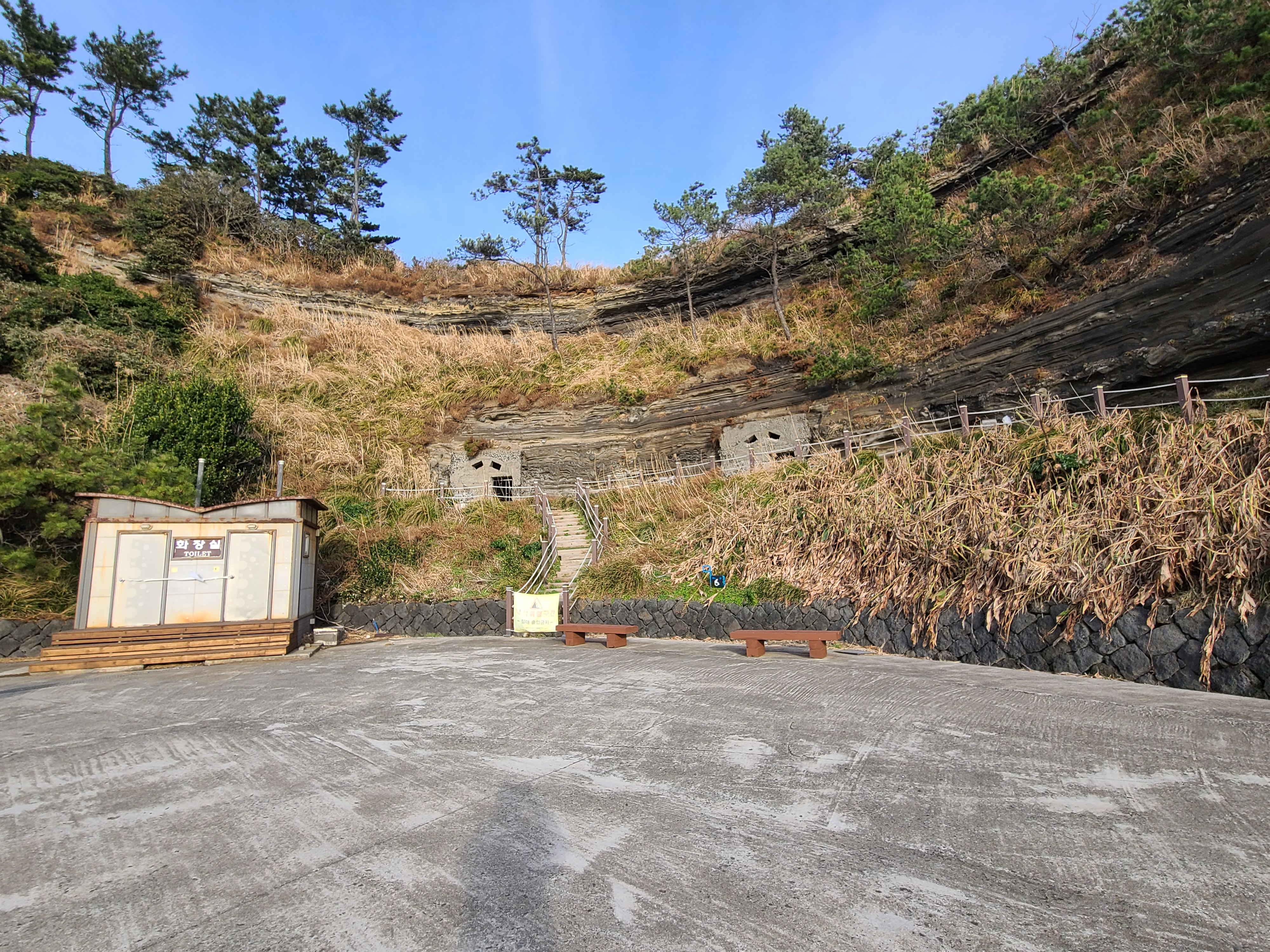 밑으로 내려가니 수월봉 지질트레일과 갱도진지가 있군요.