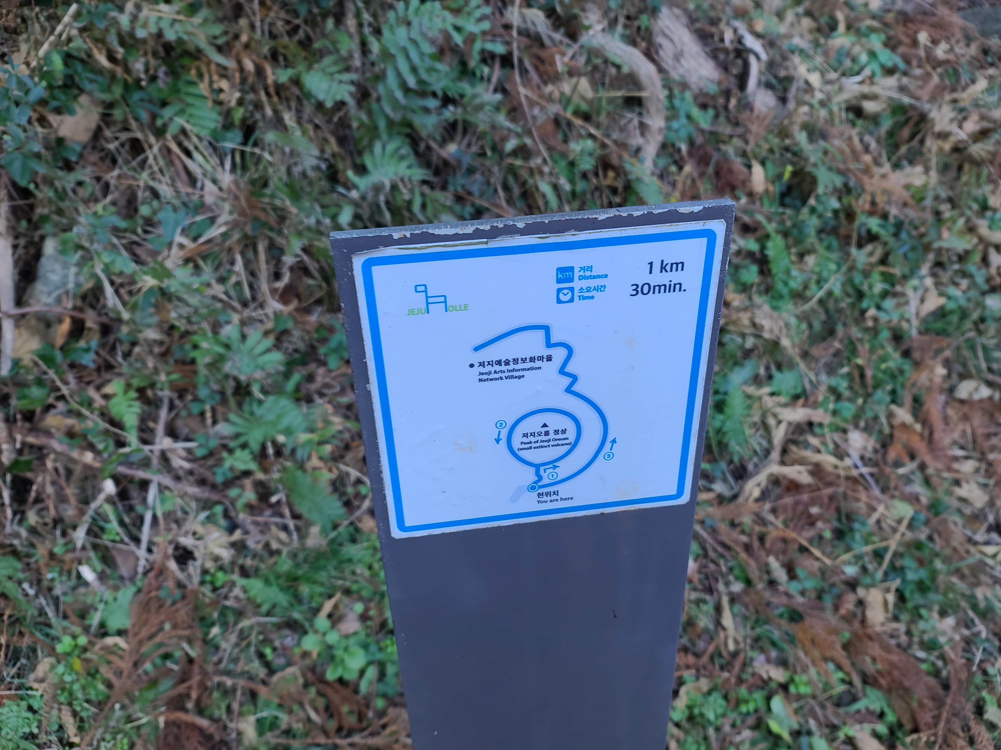 저지마을까지 1km를 가야한다고 나와있군요.