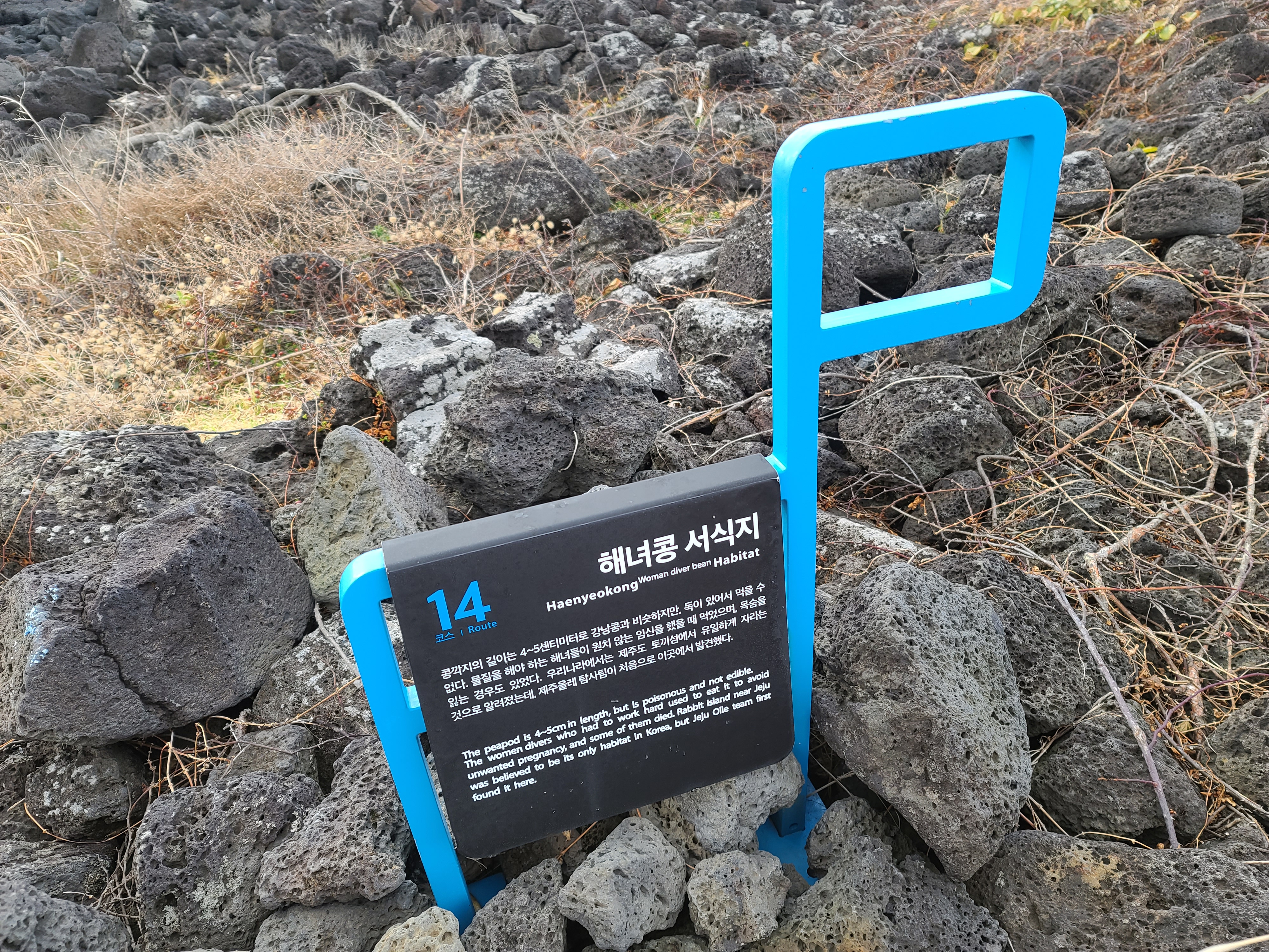 제가 올레길 14코스 트레킹을 했을 때는 겨울이라 아쉽게도 해녀콩을 볼 수 없었습니다.