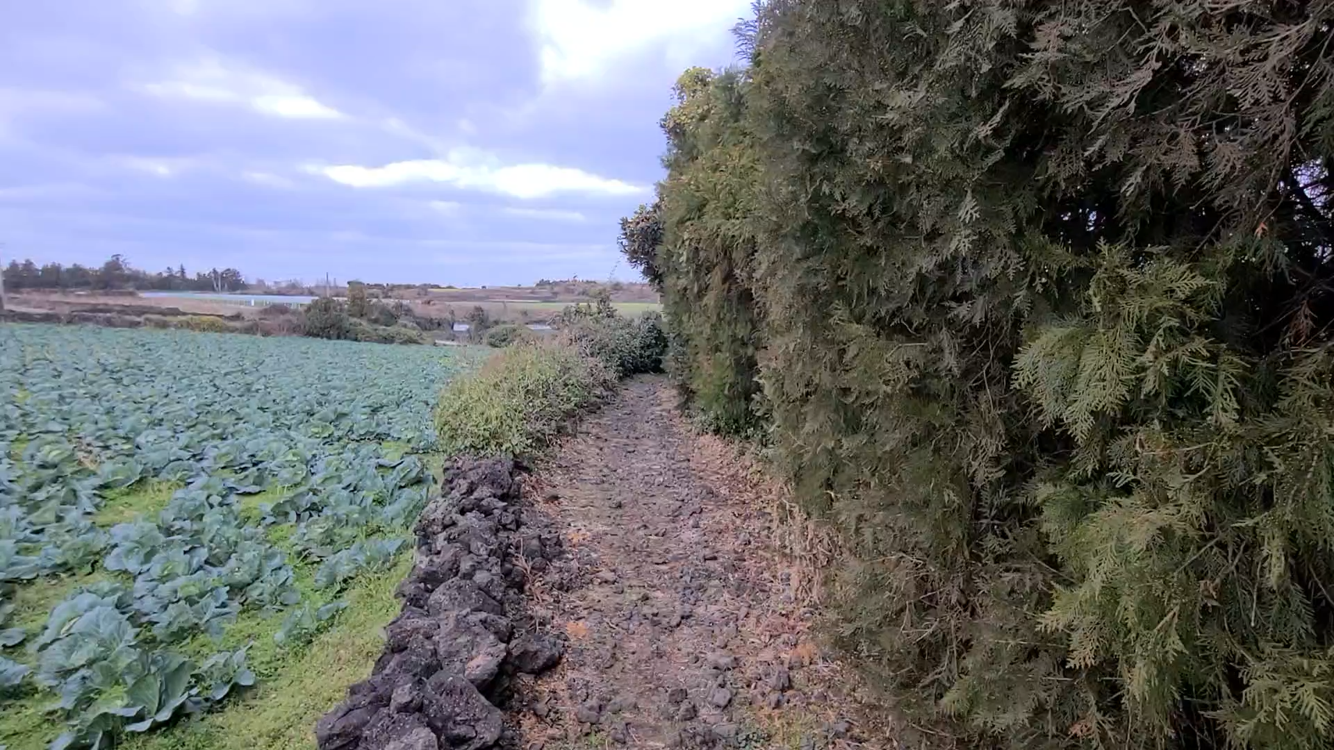 이 오시록헌 농로에서는 양배추밭을 보며 돌담길을 걸을 수 있습니다.