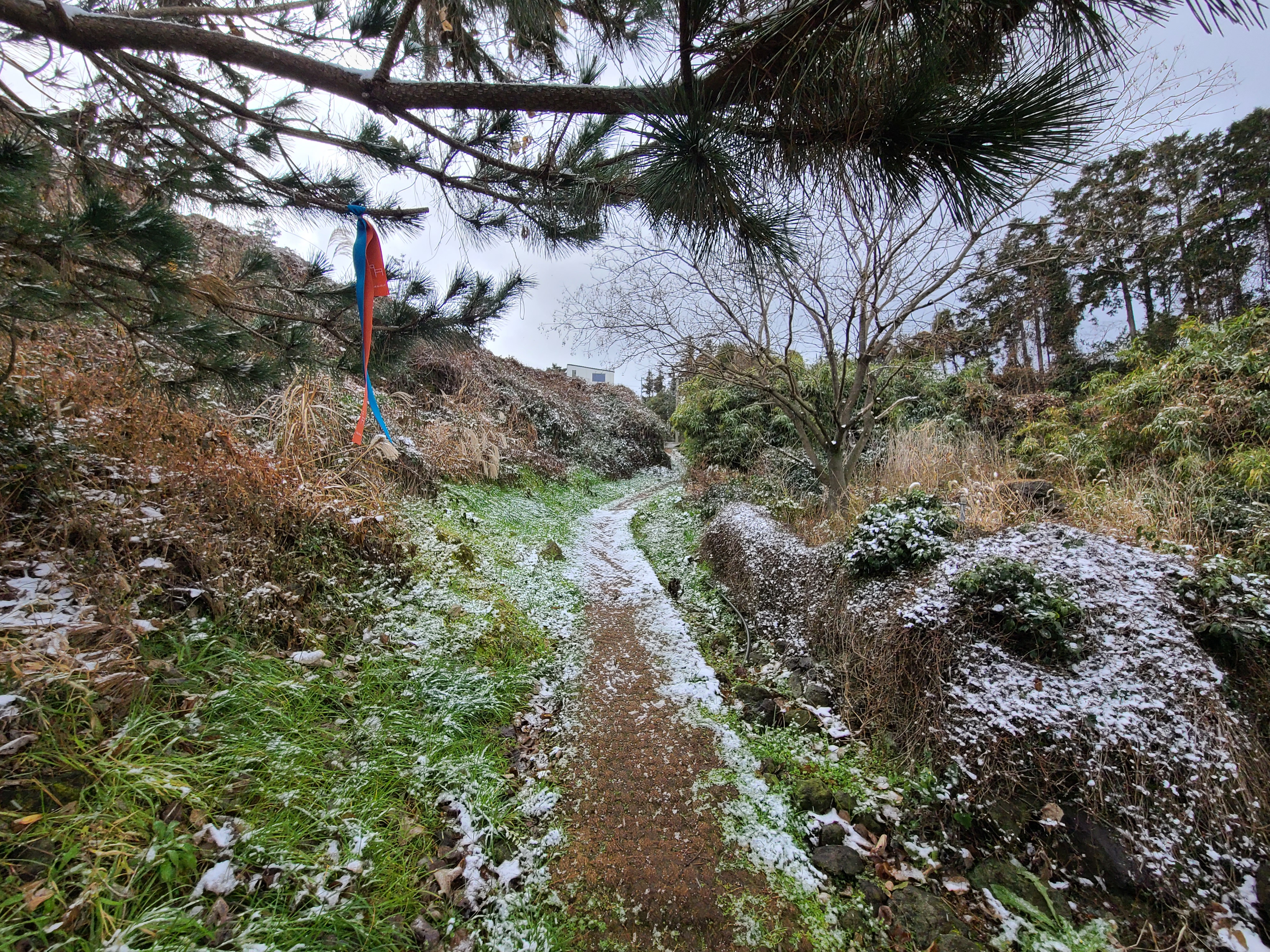 우박이 내리는 제주 올레길 16코스의 풍경입니다.