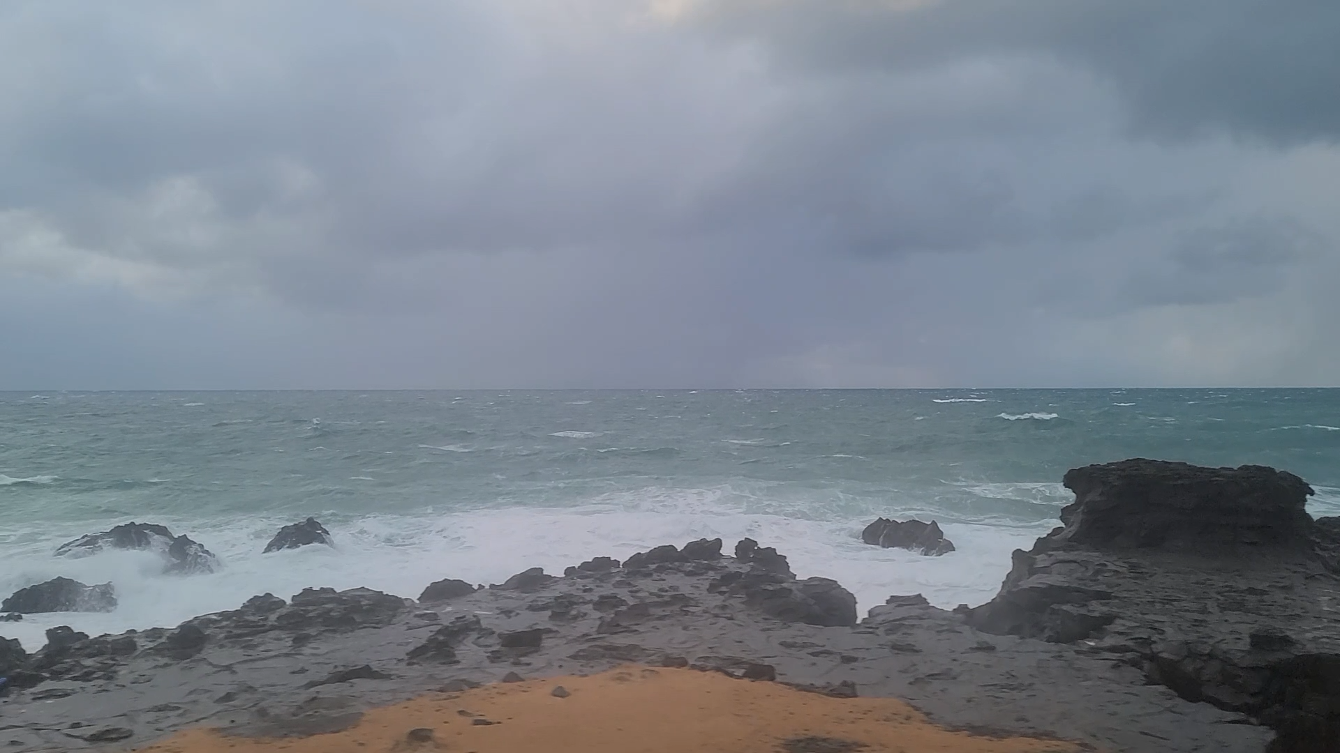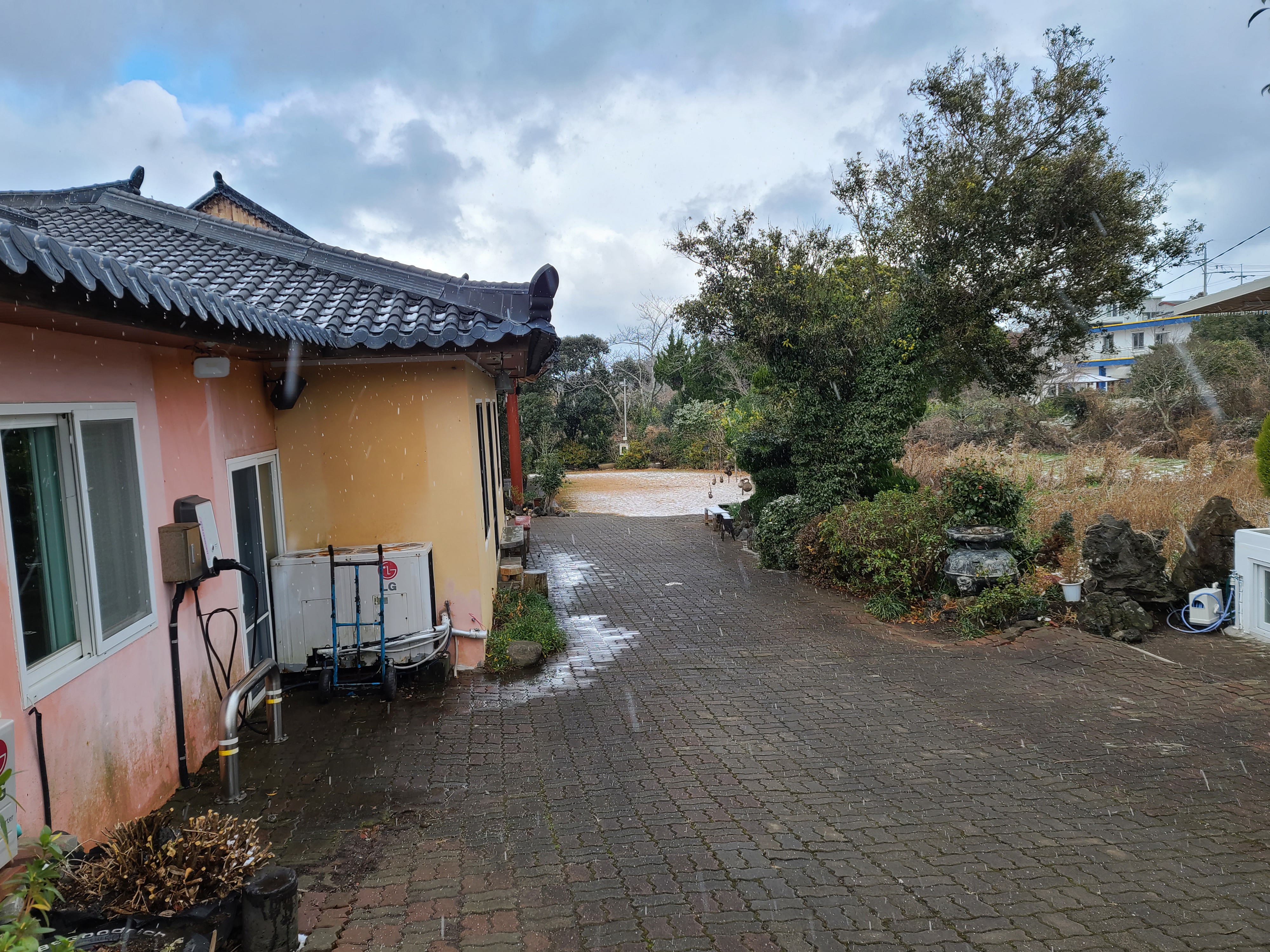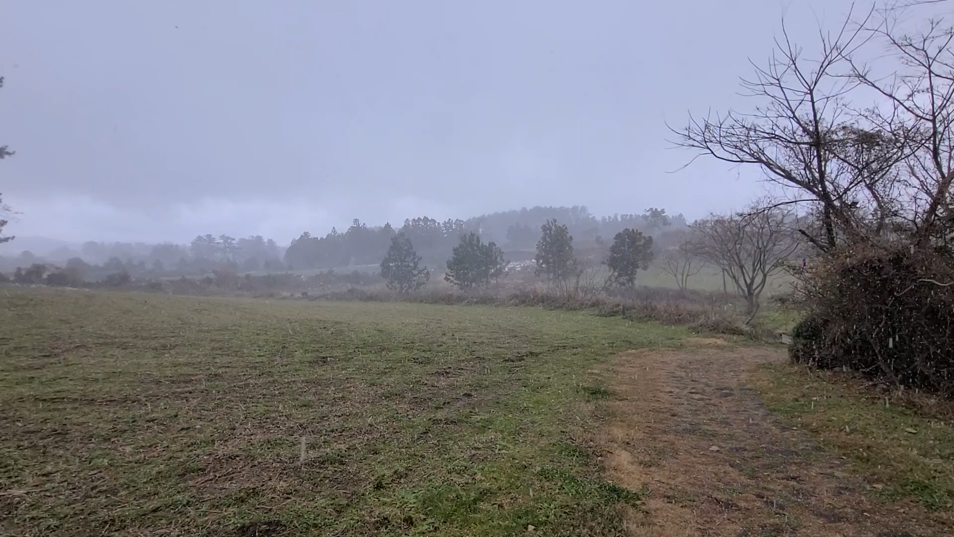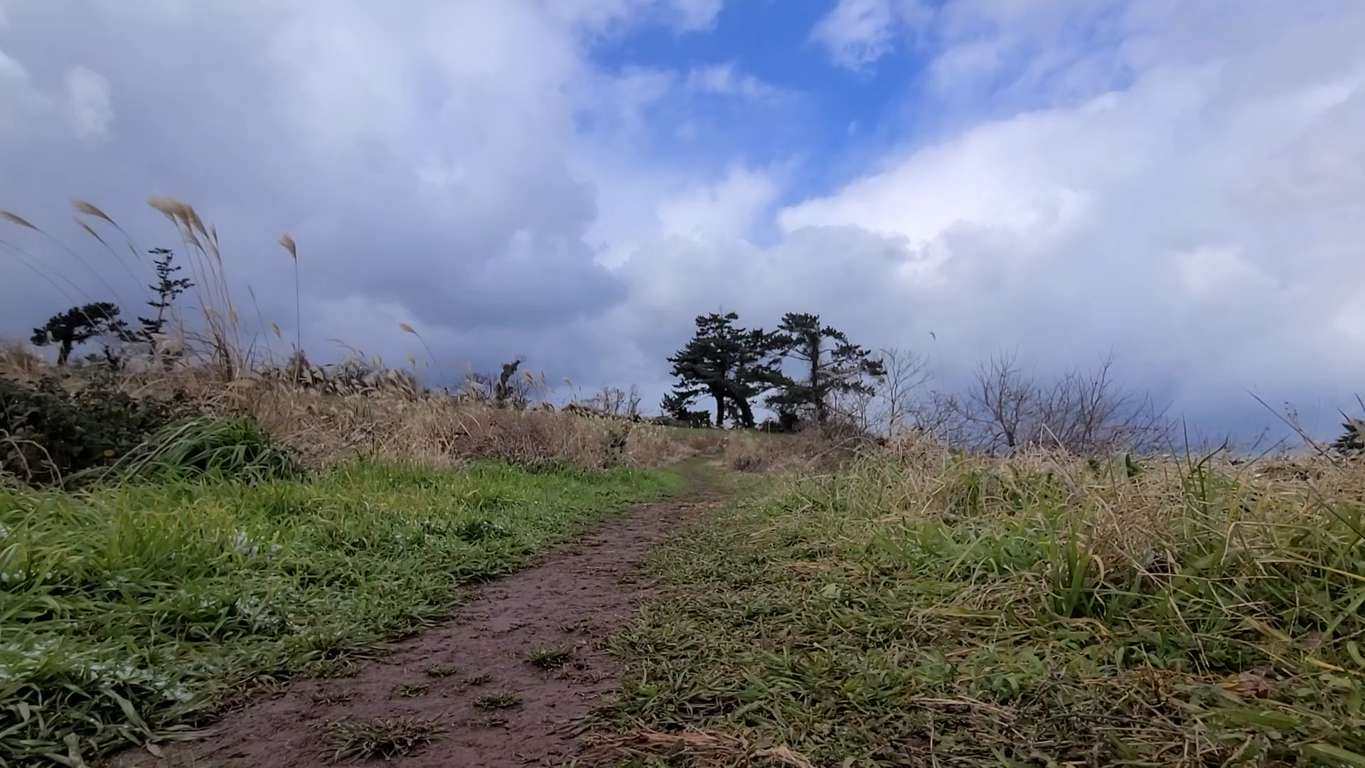 우박이 내리는 제주 올레길 16코스의 풍경입니다.