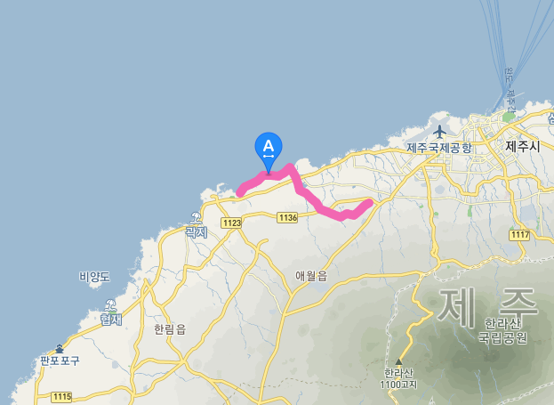 제주 올레길 16코스는 제주도 서북쪽에 위치하고 있습니다.