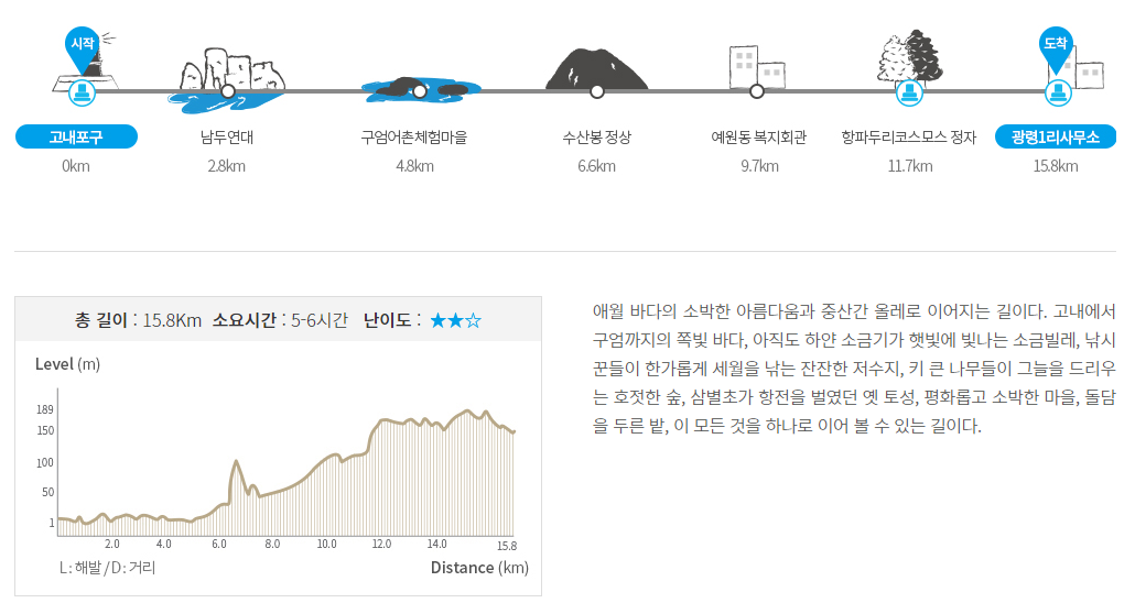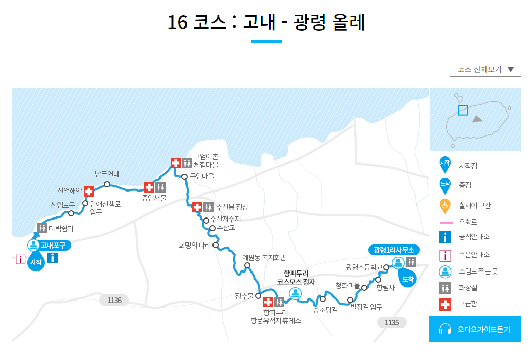 다음으로는 올레길 16코스의 정보를 말씀드리도록 하겠습니다.