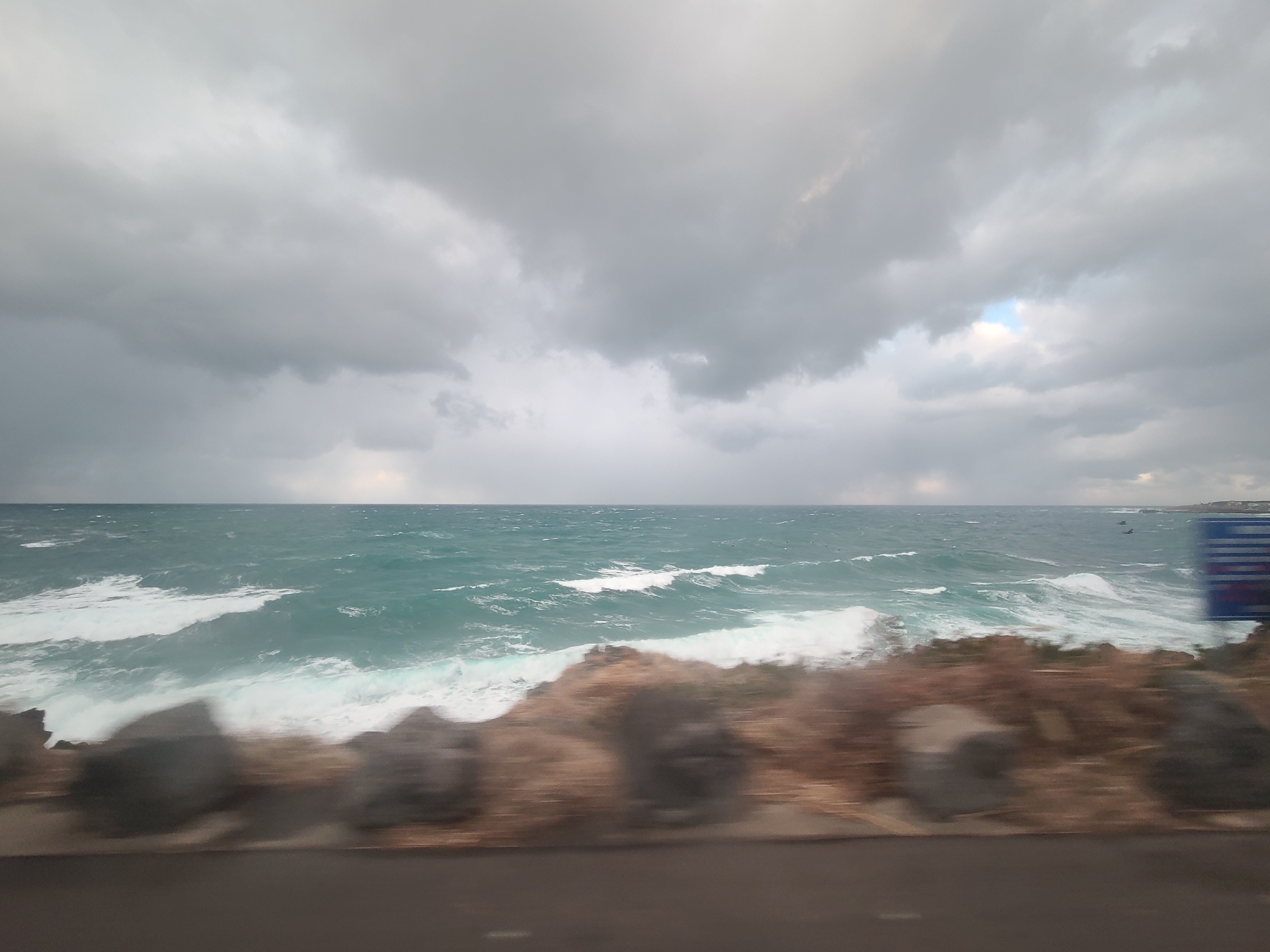 버스를 타고 가면서 찍은 바닷가의 풍경입니다.
