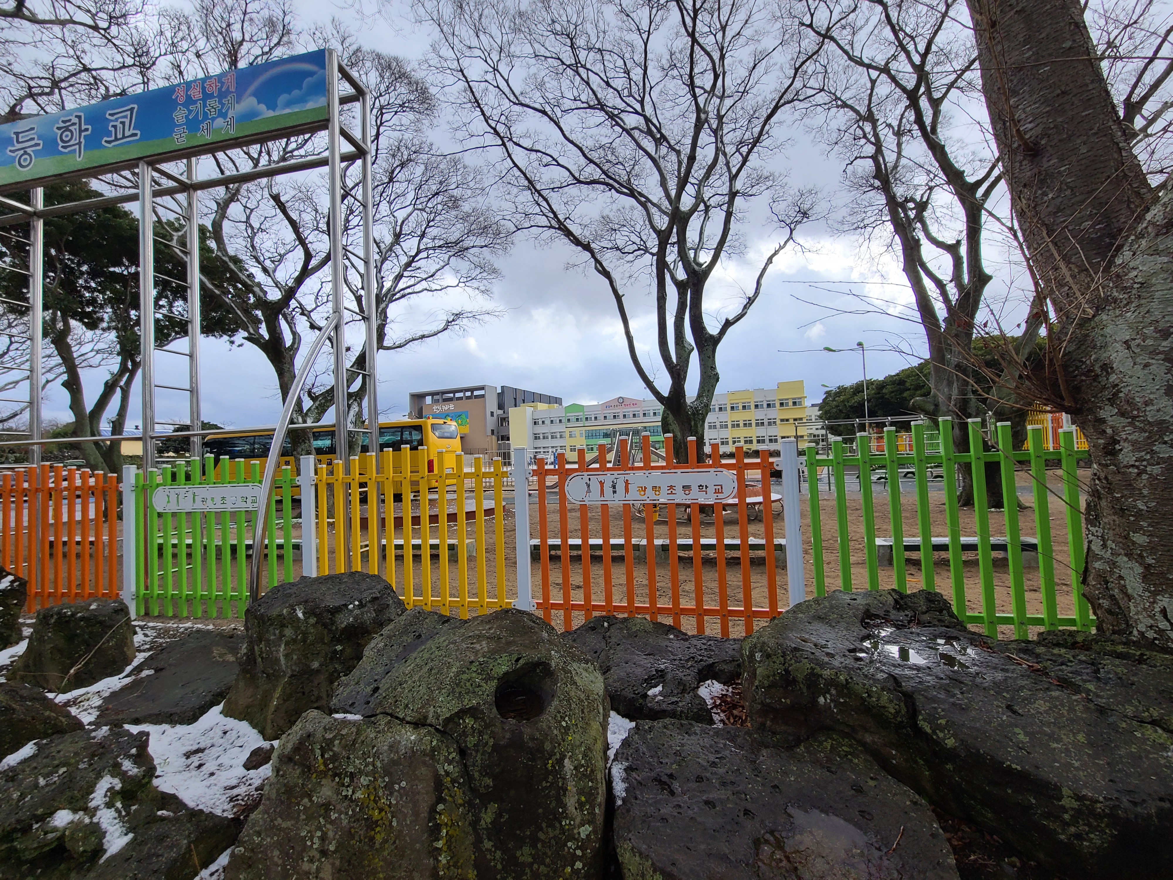 초등학교를 오른쪽에 두고 앞으로 쭉 걸어가시면,