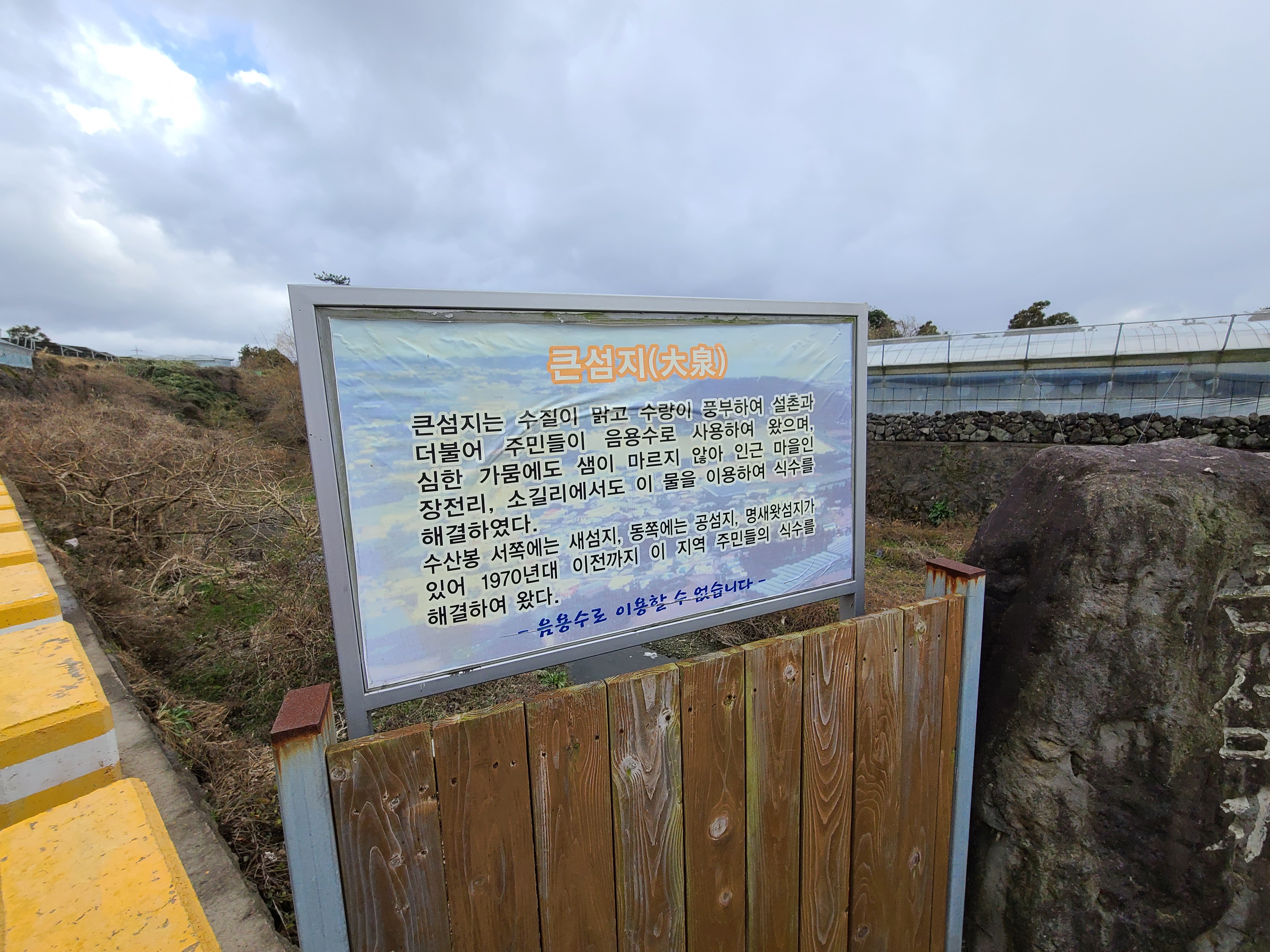정식 명칭은 큰섬지라고 하며, 수질이 맑고 수량이 풍부하여 설촌과 더불어 주민들이 음용수로 사용했다고 합니다.