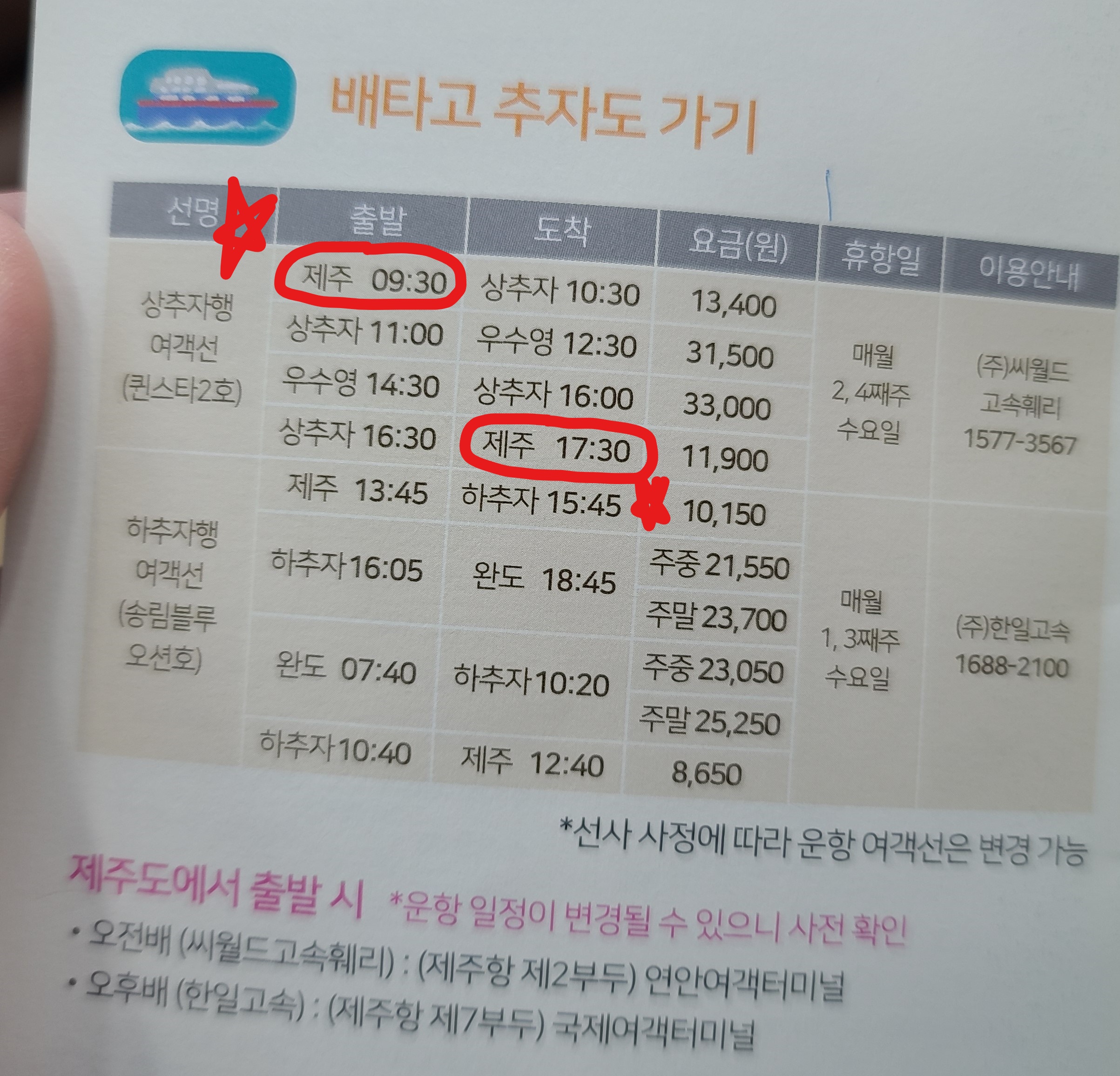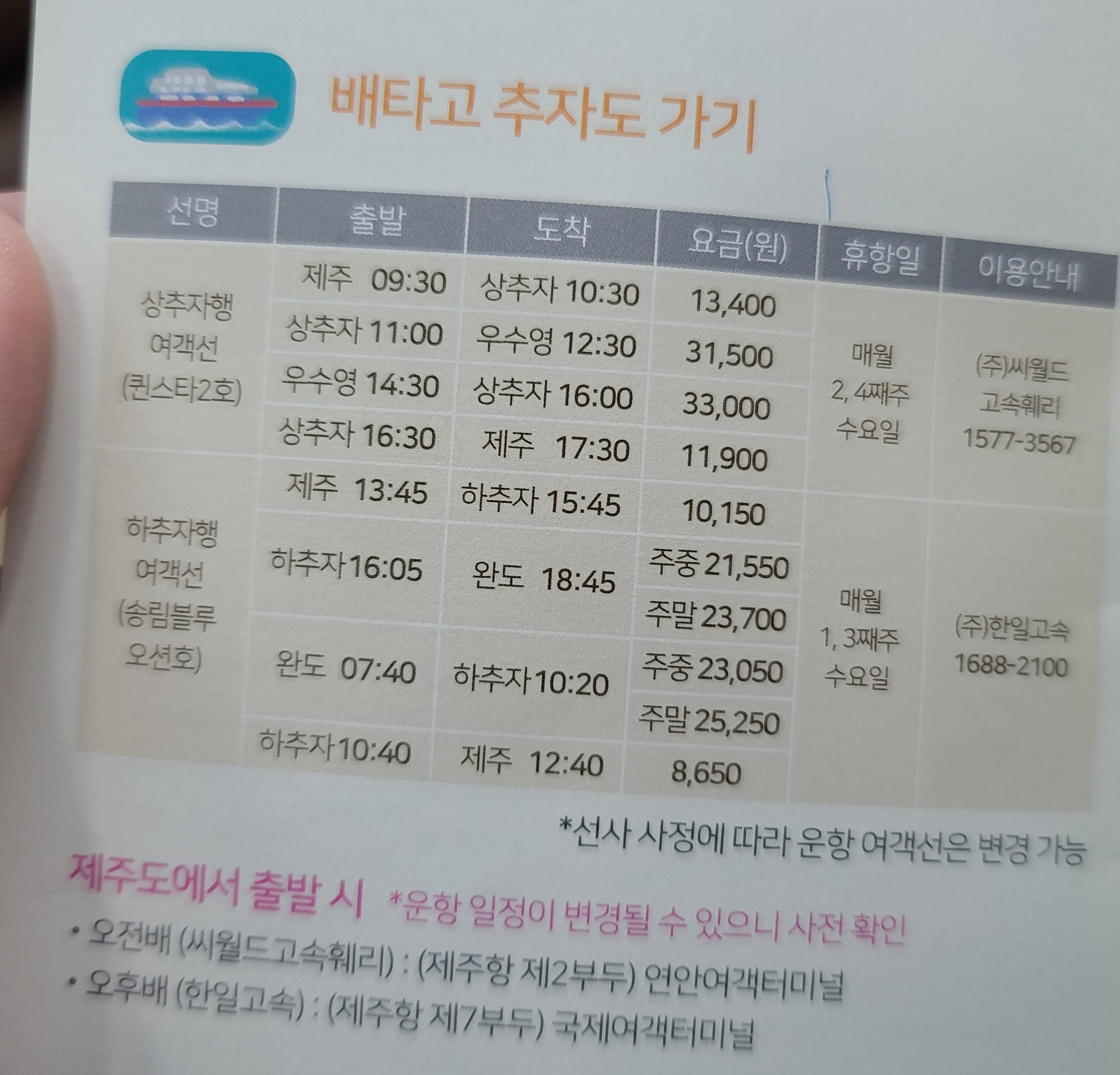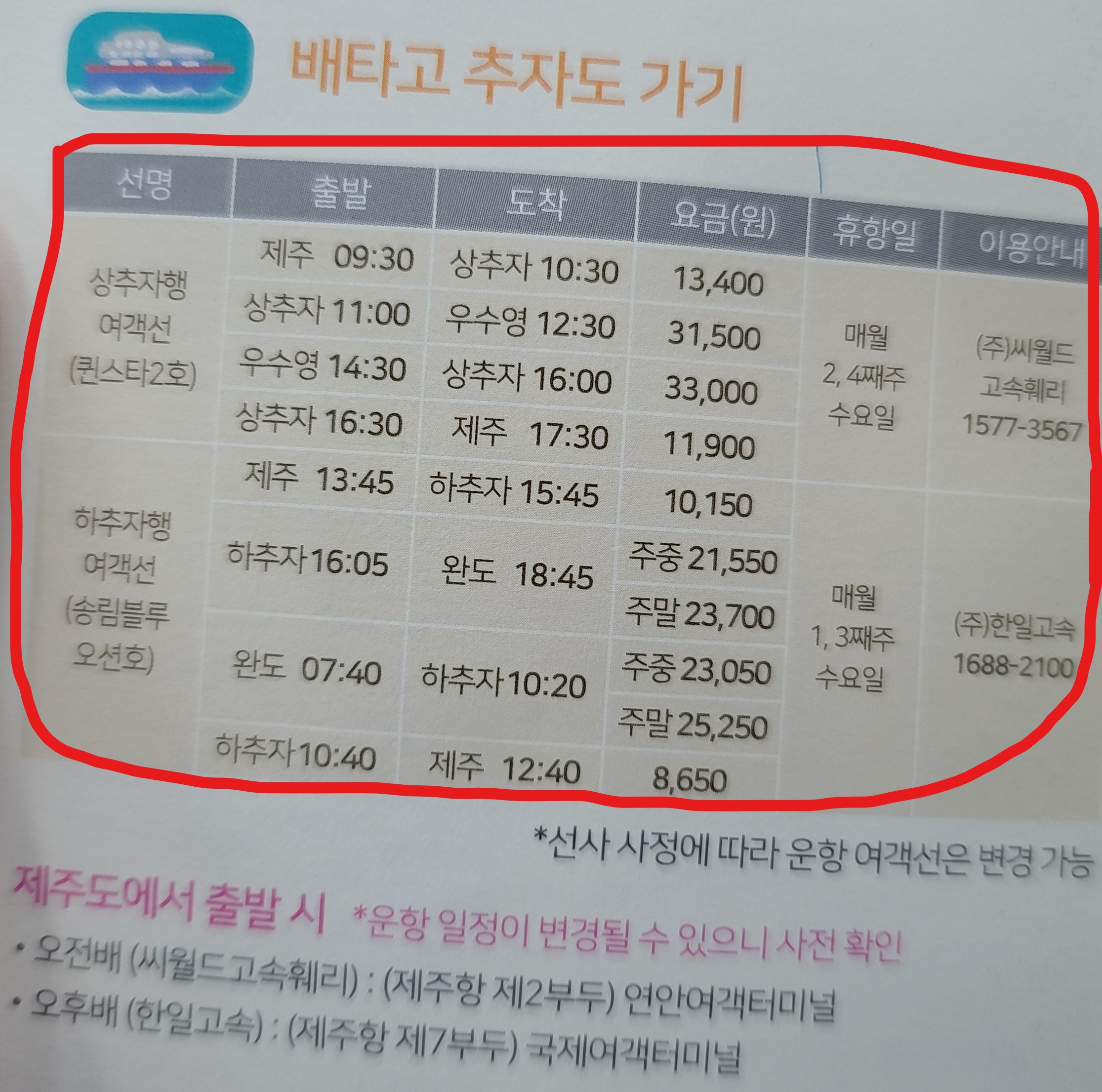 그럼 다시 추자도 배편 표를 보여드리도록 하겠습니다.