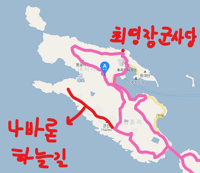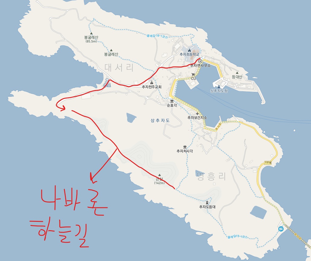 상추자항에서 바로 나바론 하늘길로 갈 수 있는 동선입니다.