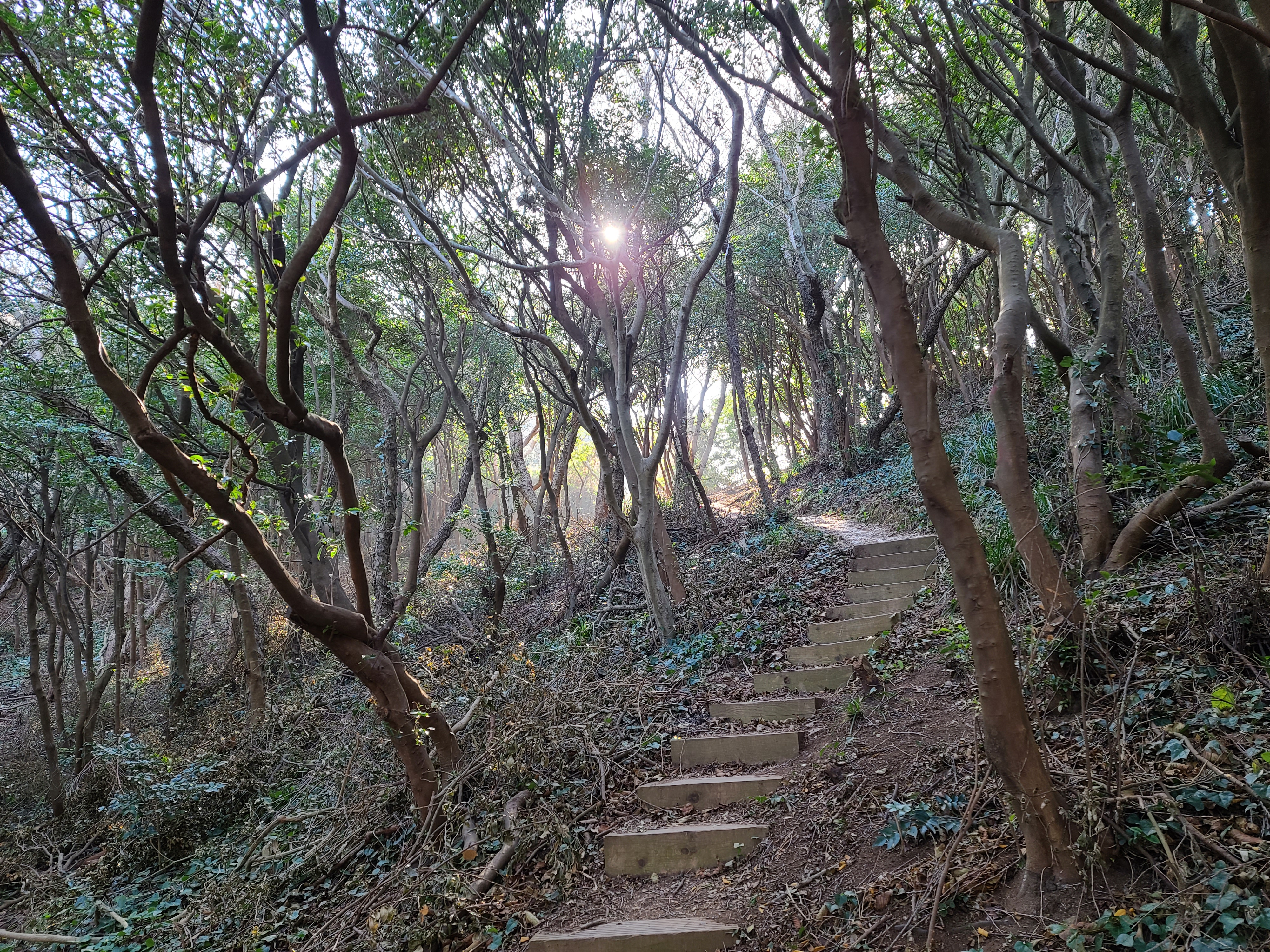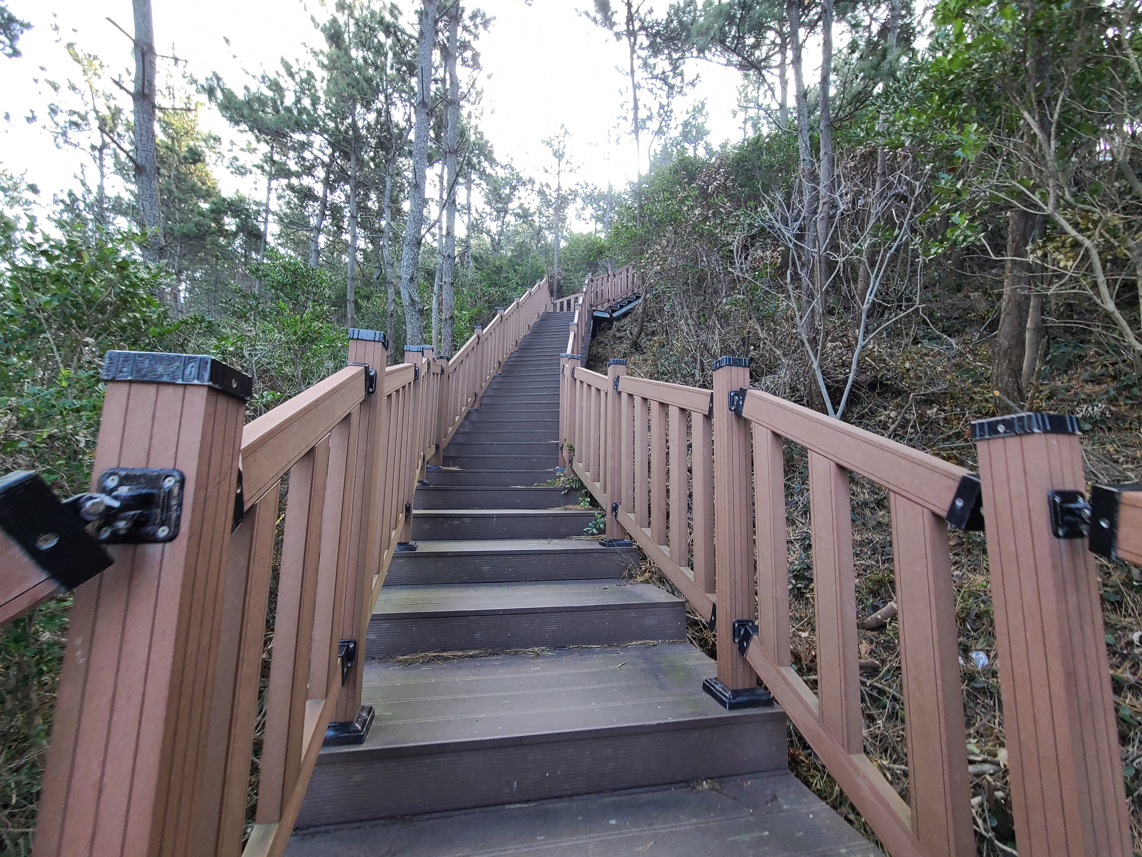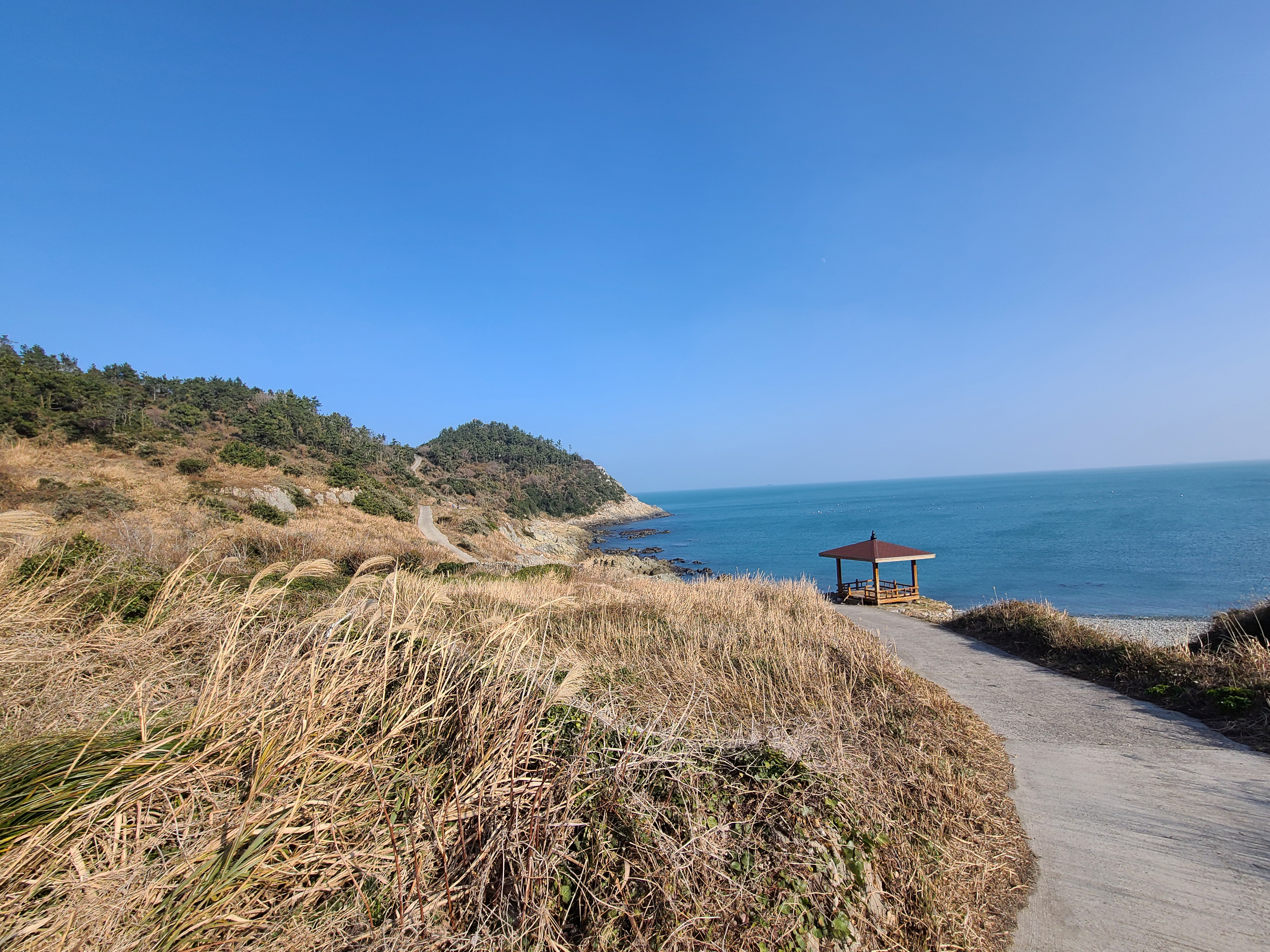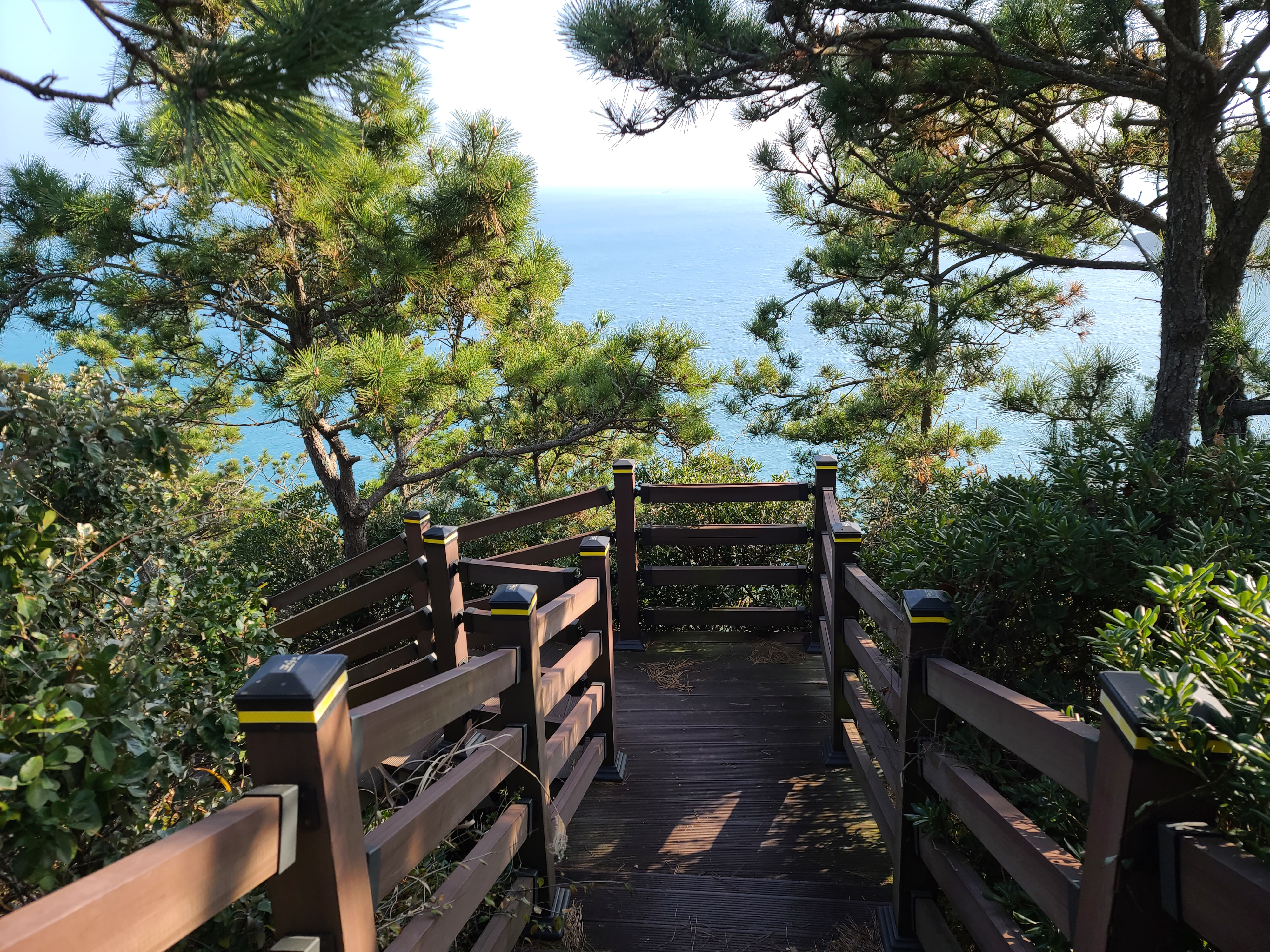 바닷길 옆에 있는 숲길이 아주 아름답습니다.