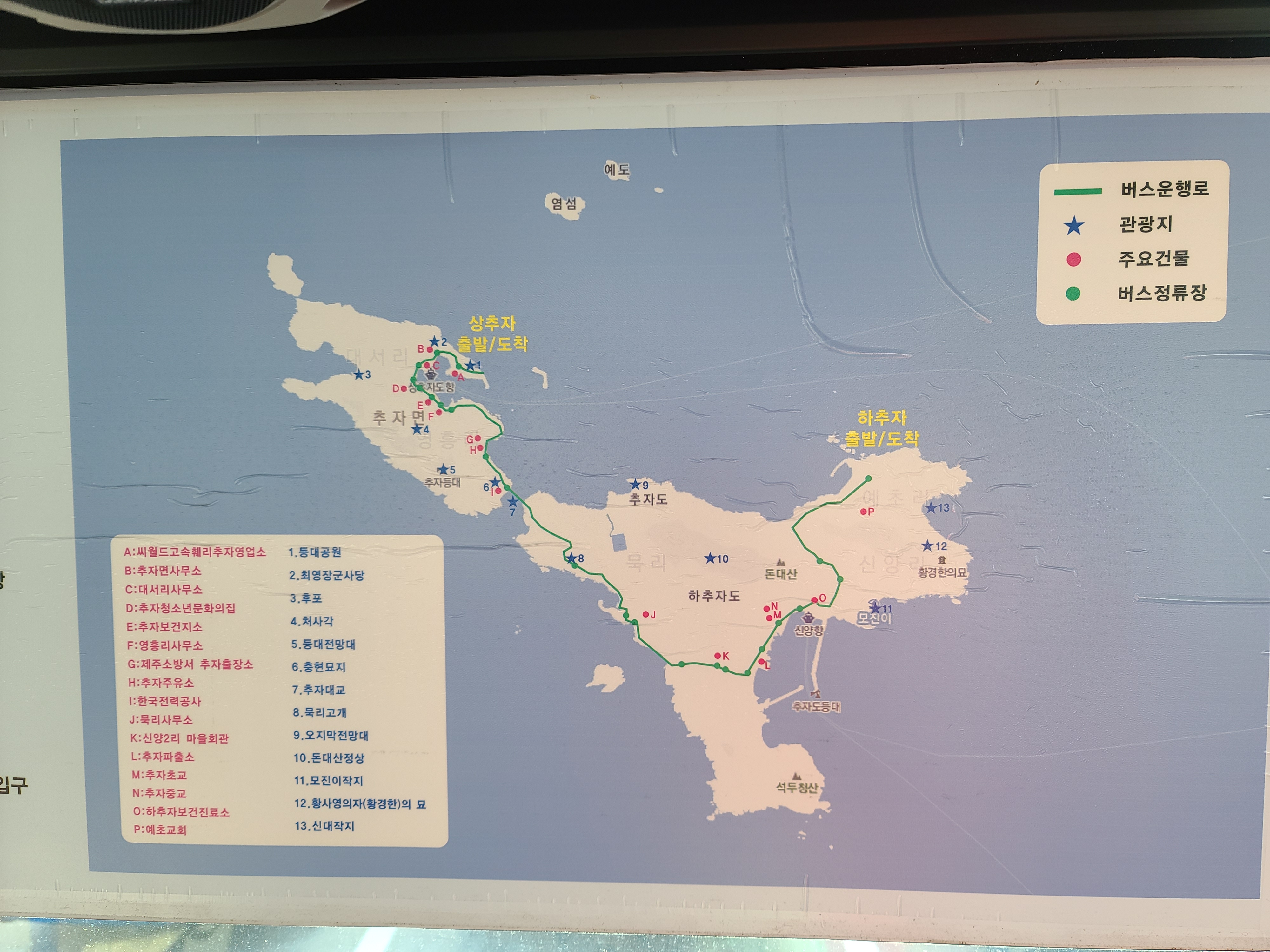 추자도 버스 노선도는 추자도 버스정류장에 붙어있지 않고 버스 내부에 붙어있으므로 이를 캡쳐해두시면 추자도 여행을 하실 때 매우 유용하게 사용할 수 있습니다.