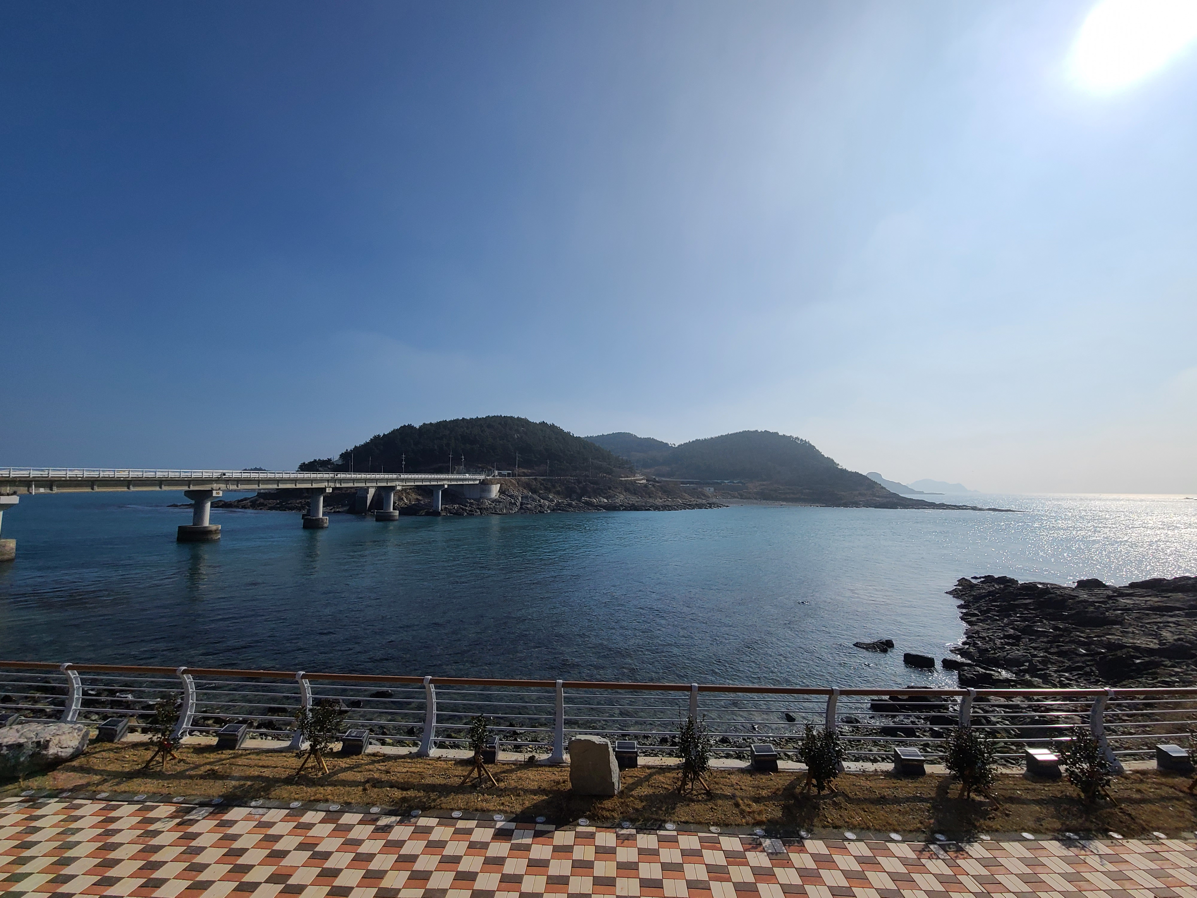 바다는 잔잔했는데, 이날 미세먼지가 좀 있어서 앞이 선명하게 보이지는 않았습니다.