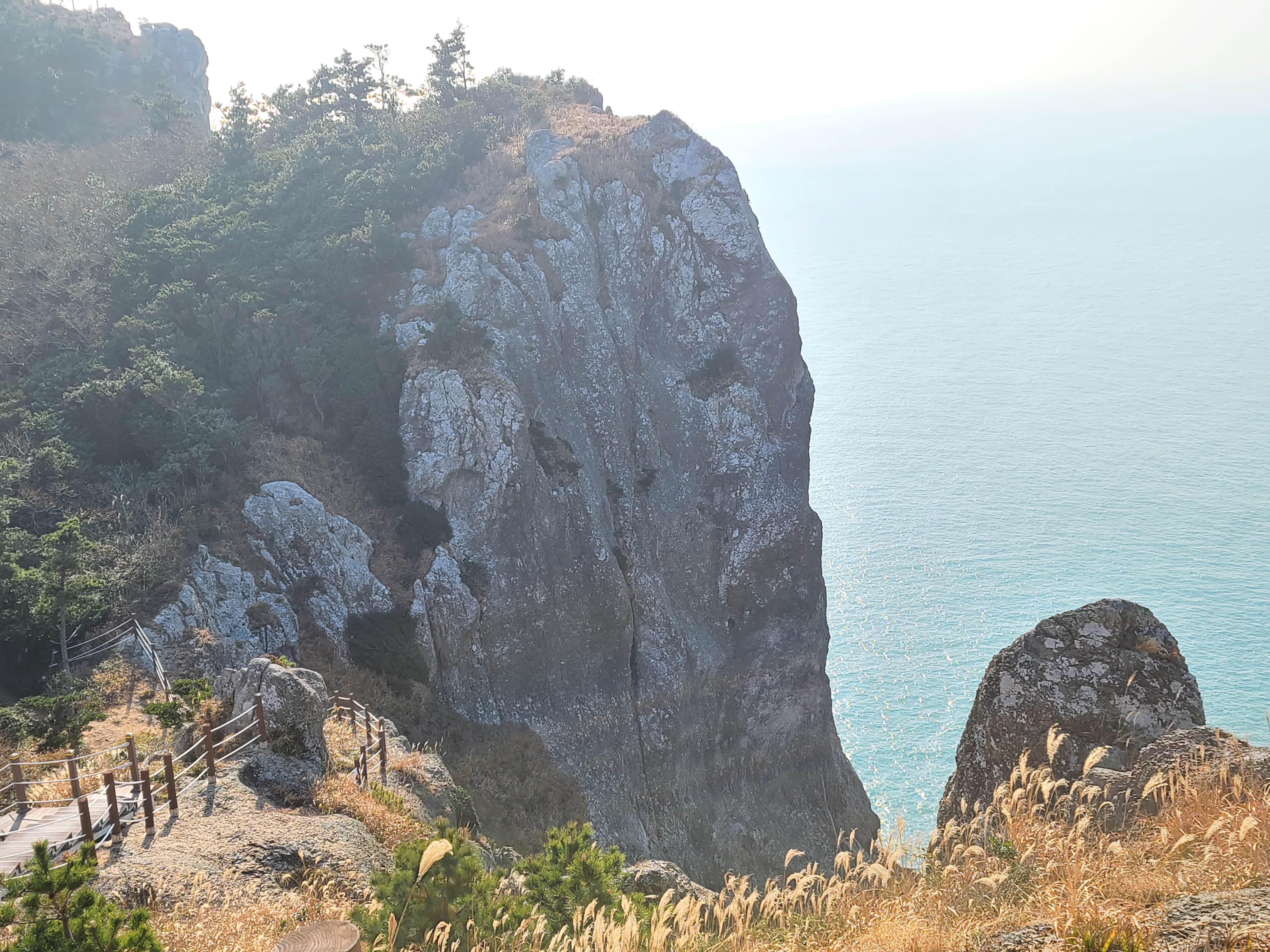 예초리 기정길에서는 굴곡진 암석들 위에 사뿐히 자리잡고 있는 식생들을 감상할 수 있습니다.