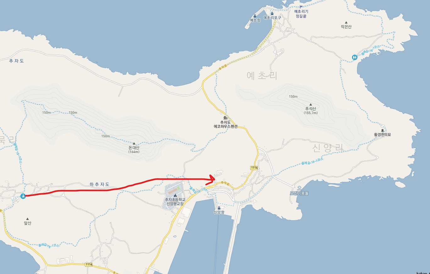 추자면 대서리 375-1까지 가는 길은 아래와 같습니다.