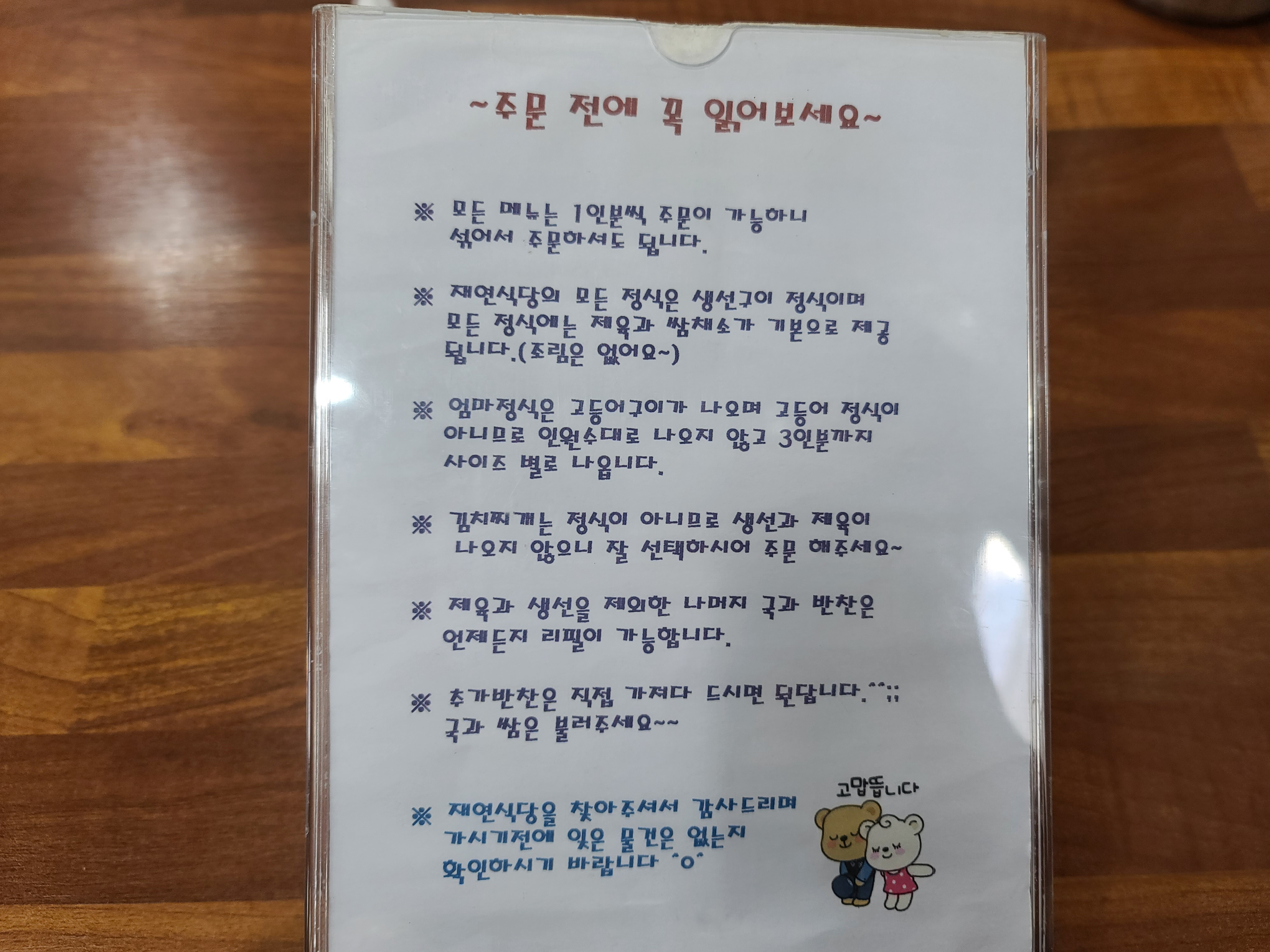 저와 같이 혼자 올레길을 걸으시거나 제주도의 특별한 음식을 먹지 않아도 상관이 없으신 분들에게 제주 세화 맛집 재연식당을 추천드리고 싶습니다.