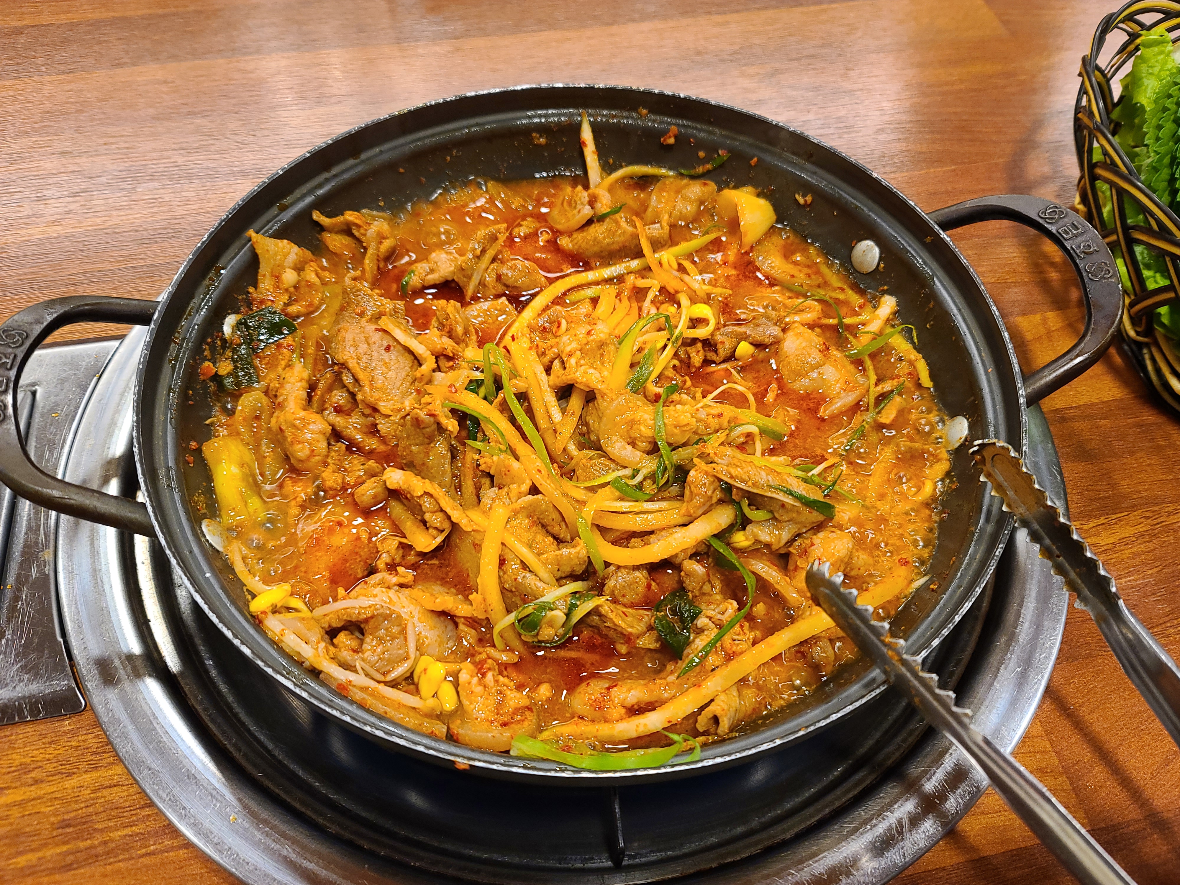 따라서 밥과 함께 먹는 것보다는 쌈채소에 두루치기를 싸서 먹는 것이 더 맛있었습니다.