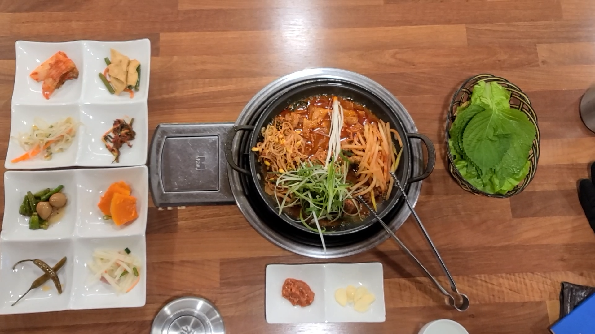 쌈채소와 생마늘, 그리고 쌈장도 있군요.