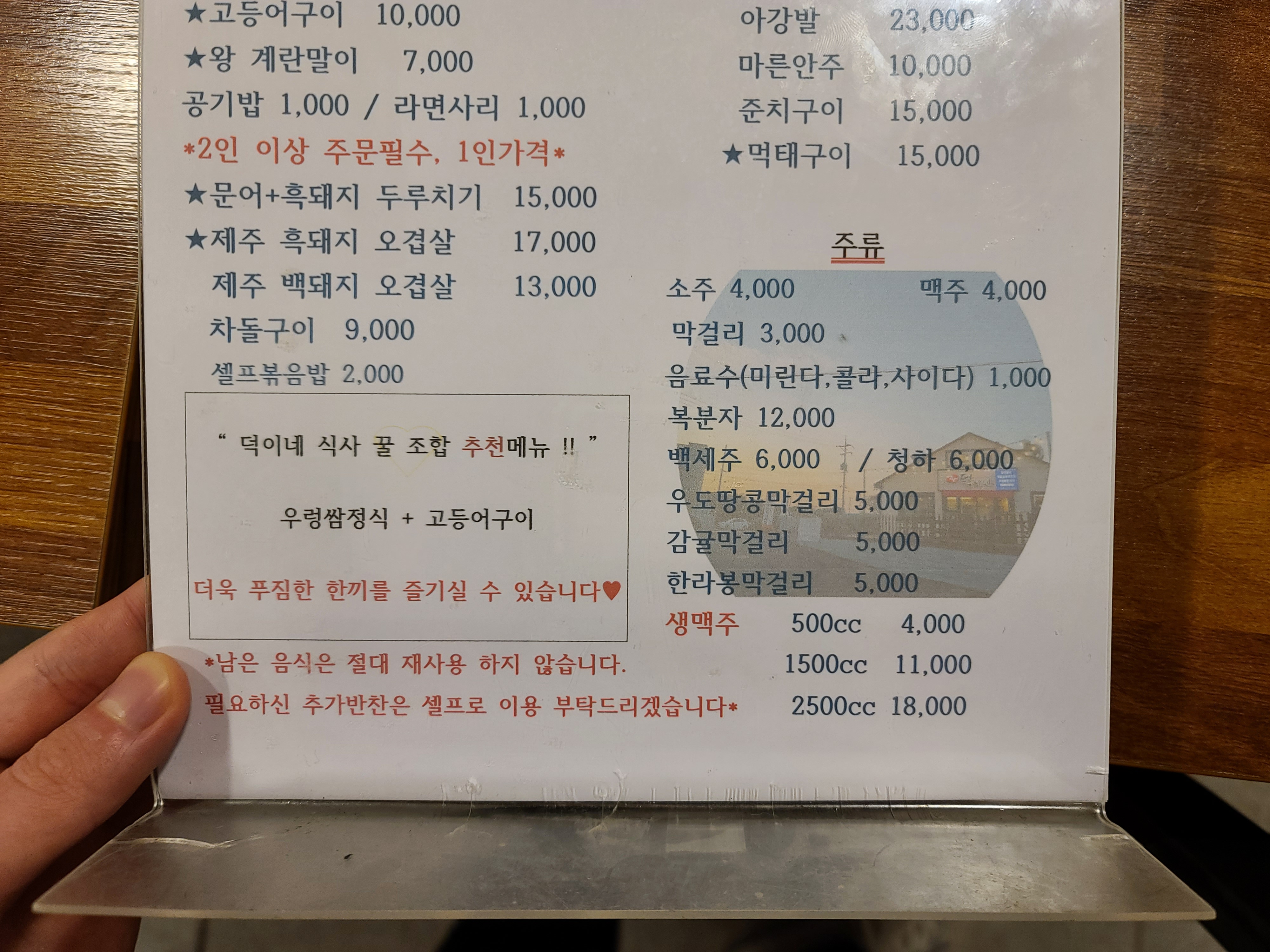 제주 온평리 맛집 성산덕이네 메뉴판입니다.