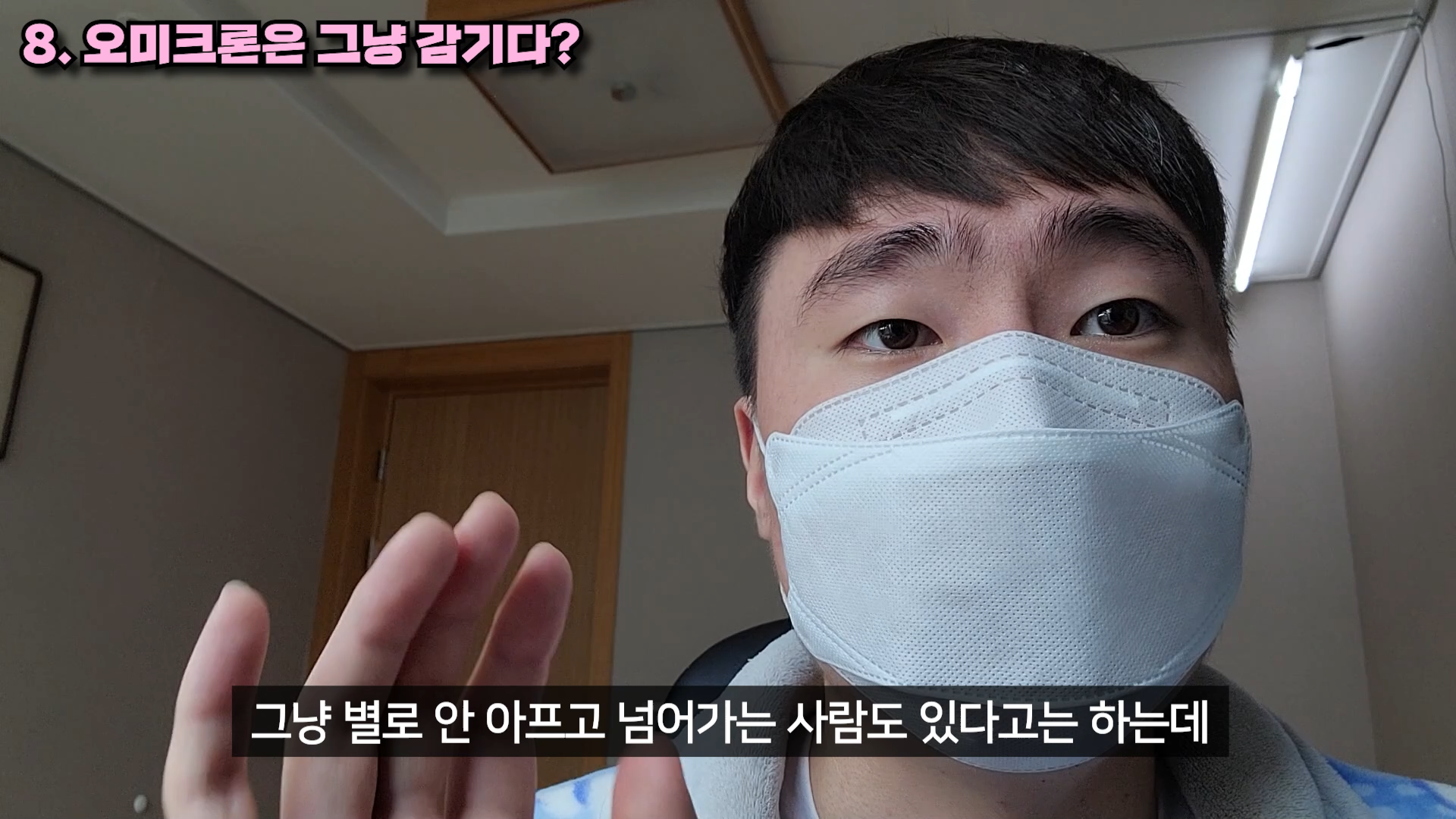 오미크론은 그냥 감기고 별로 안아프고 넘어가는 경우가 많다고 하는 것 같습니다.