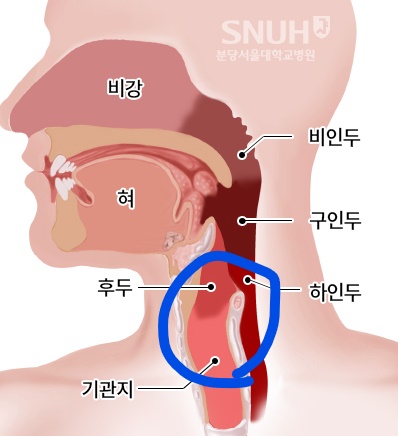 코와 입쪽이 연결되는 여린입천장 쪽이 아닌 목 안쪽 후두, 하인두, 기관지에 찢어질듯한 통증이 있었습니다.
