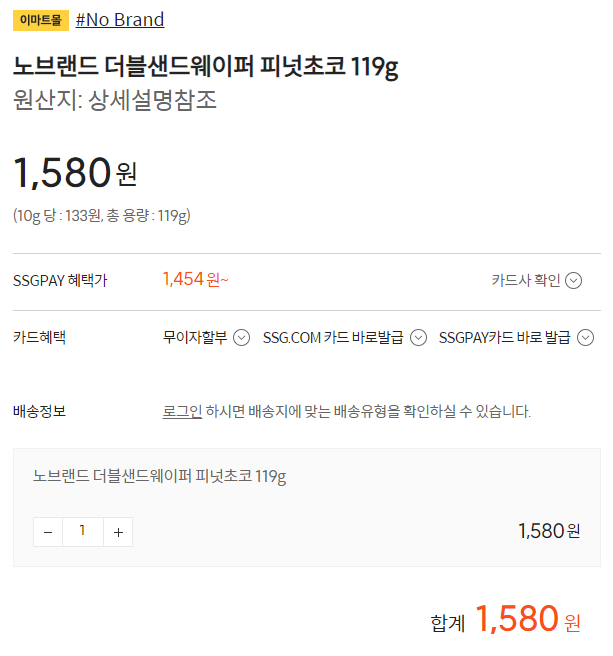 노브랜드 웨하스는 한 봉지(119g)에 1,580원입니다.