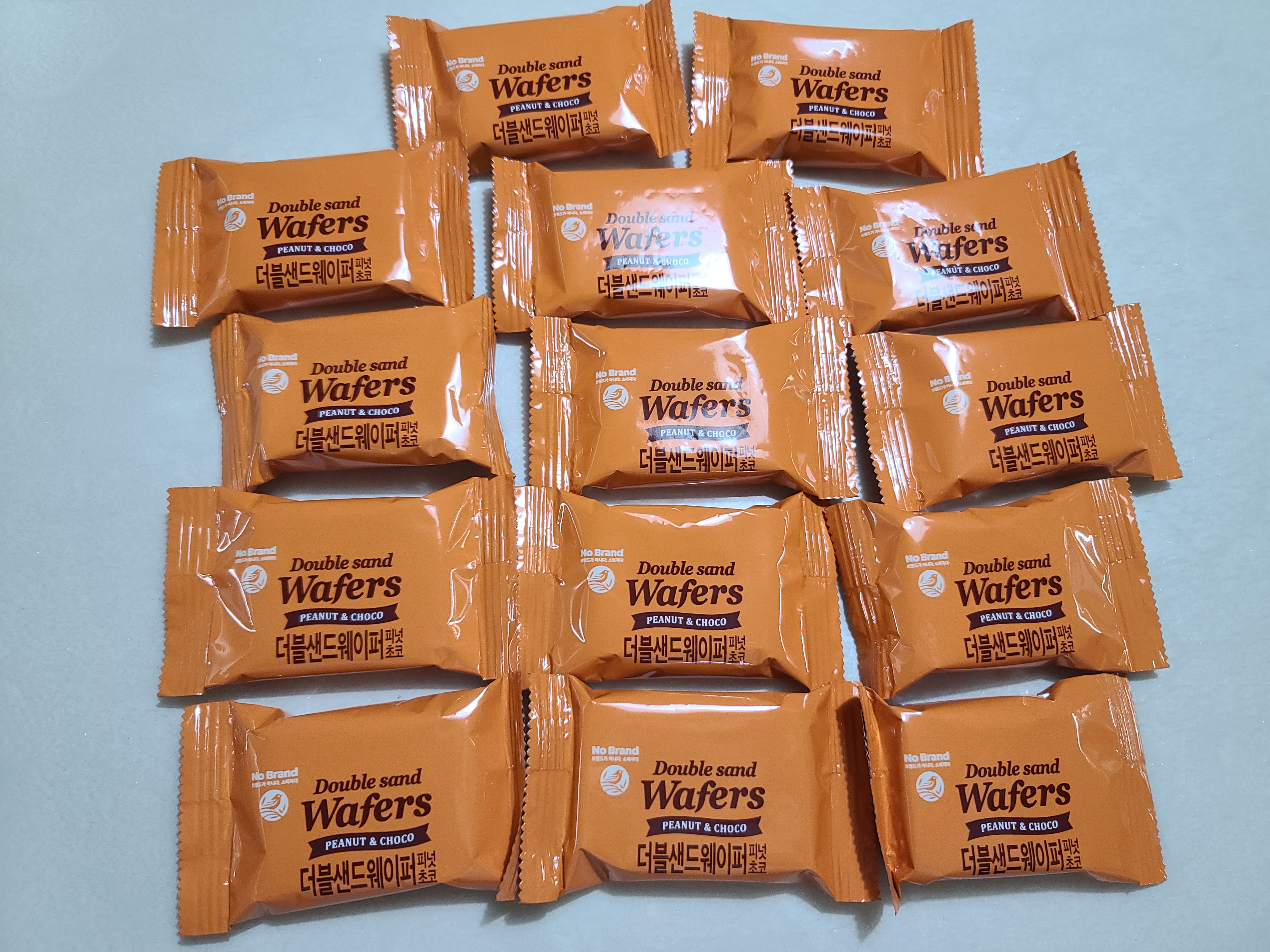 포장지를 뜯어서 노브랜드 웨하스의 갯수를 세보니 총 14개가 들어있었습니다.