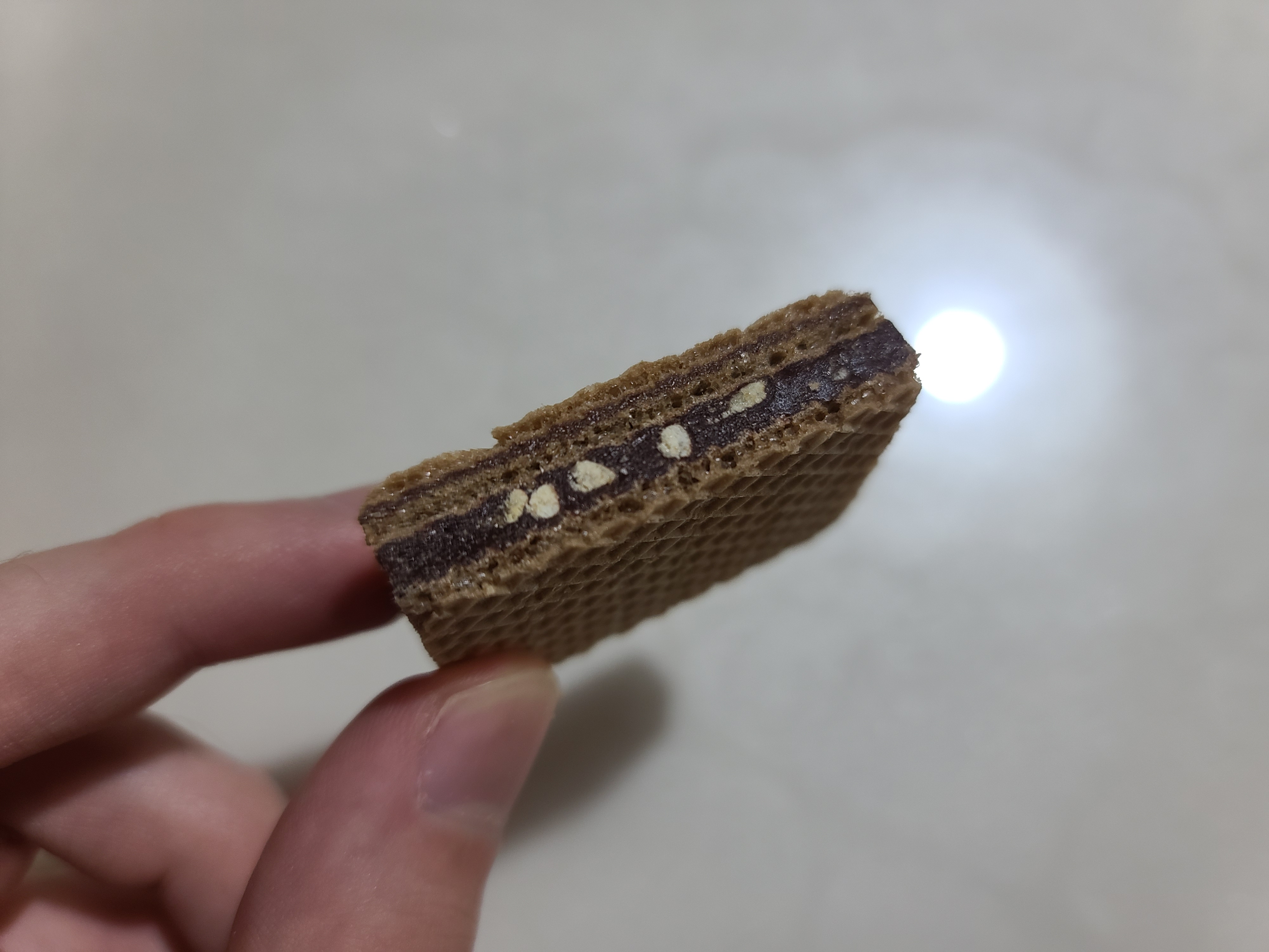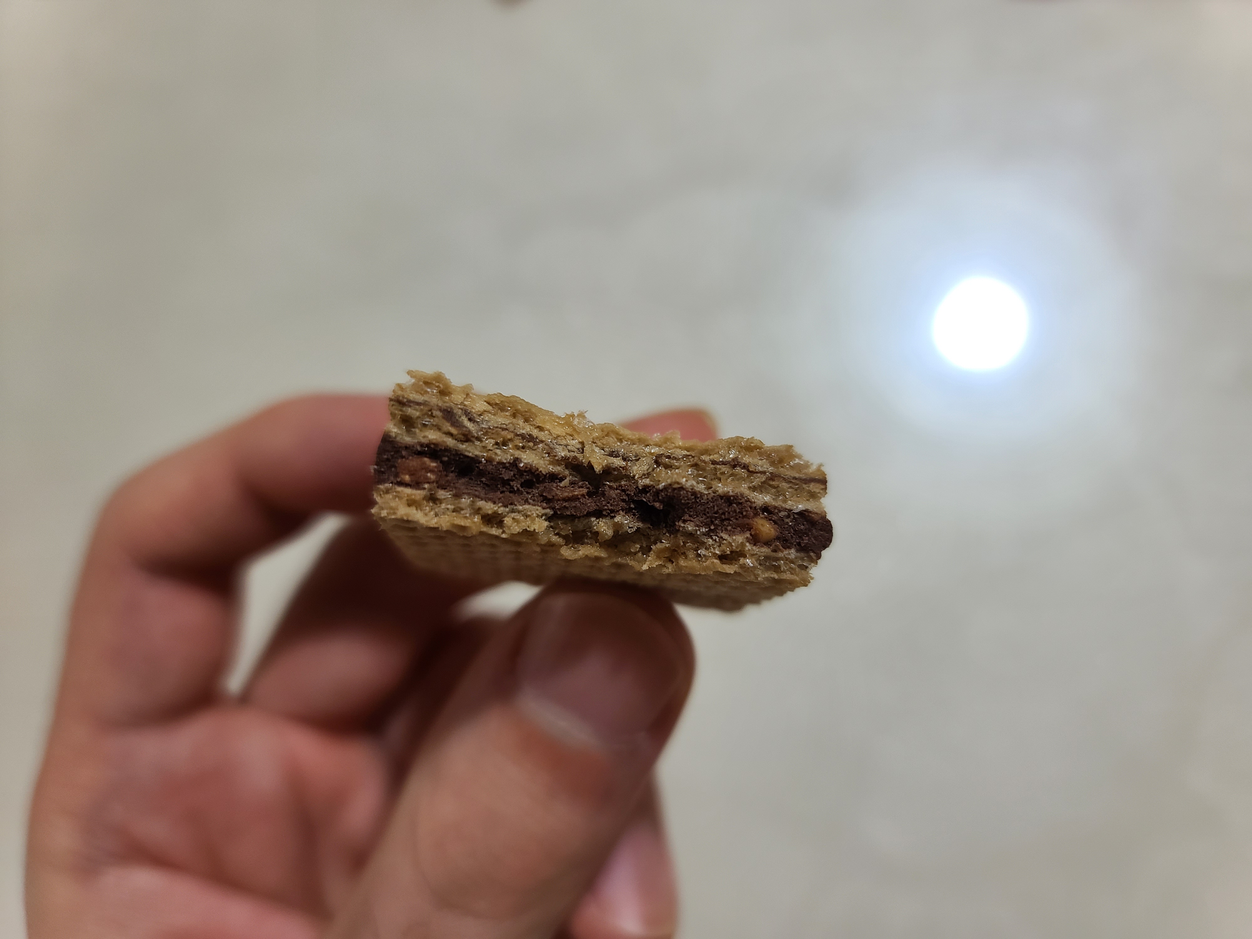 노브랜드 웨하스는 과자층 3개, 얇은 초코층 1개, 두꺼운 초코층(땅콩) 1개로 총 5겹입니다.