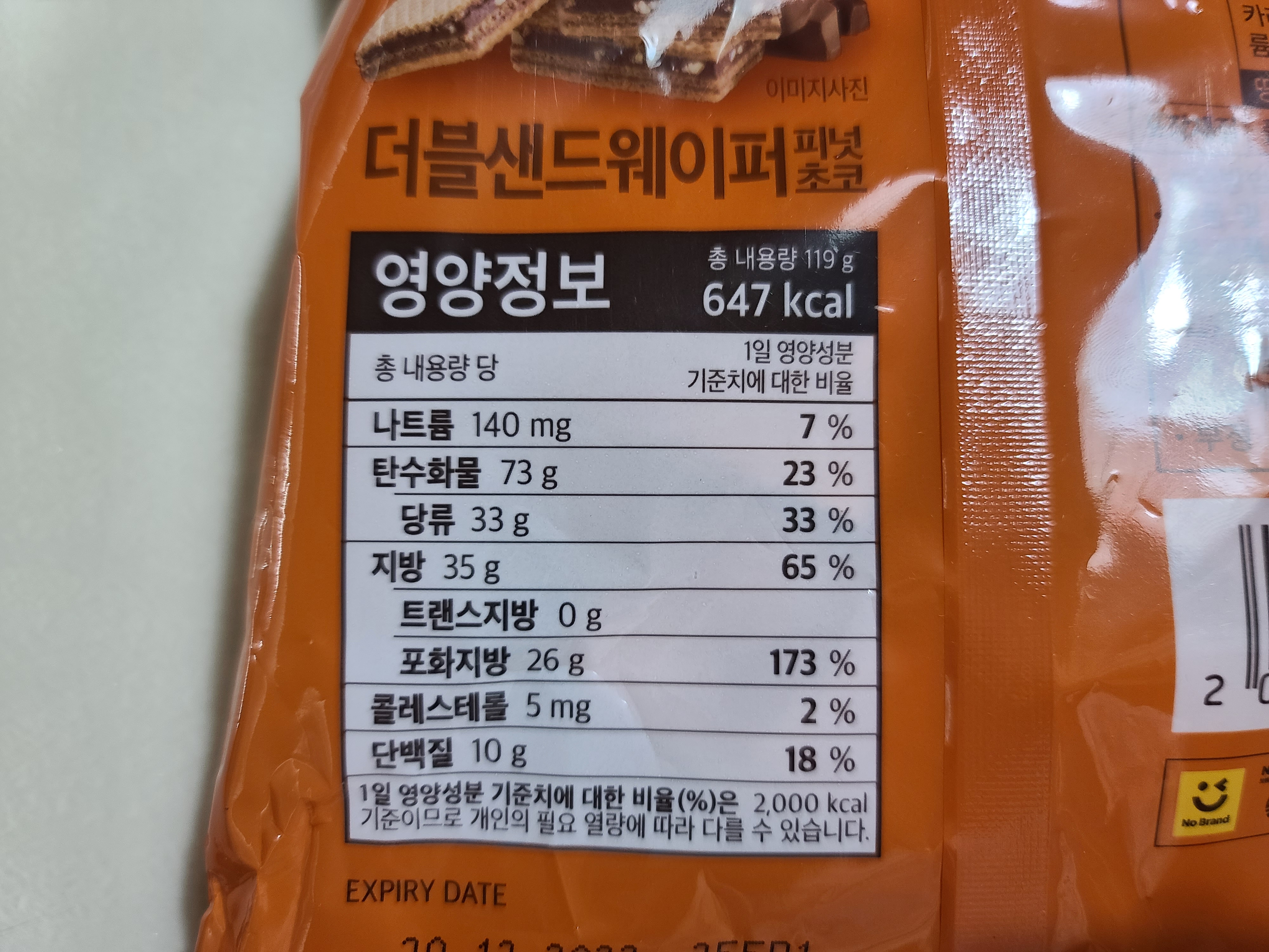 다음으로는 노브랜드 웨하스의 영양정보를 살펴보겠습니다.