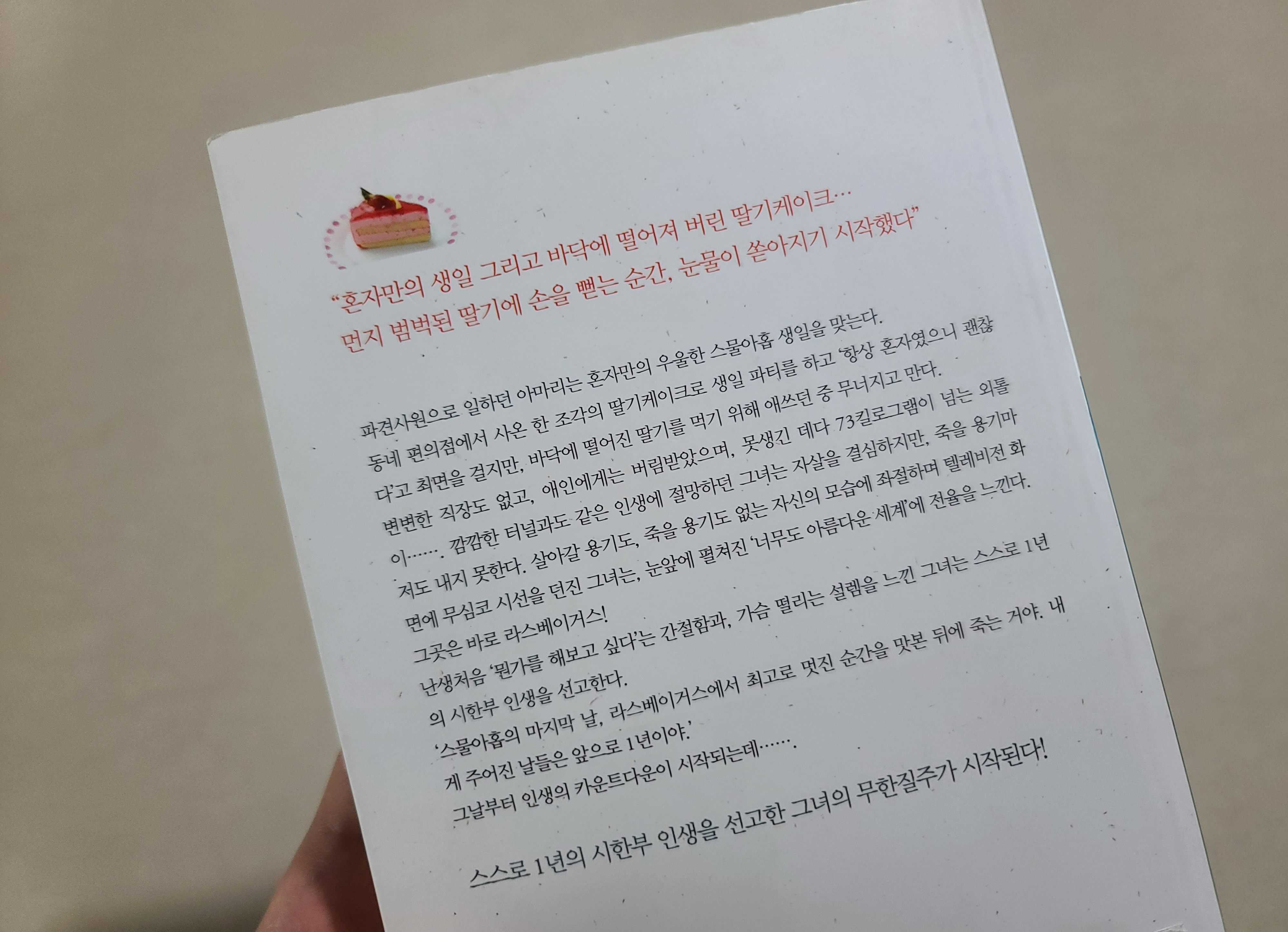 사실 어떻게 보면 이미 이 책의 제목 '스물아홉 생일, 1년 후 죽기로 결심했다'에서 이 책의 줄거리가 거의 다 설명된다.