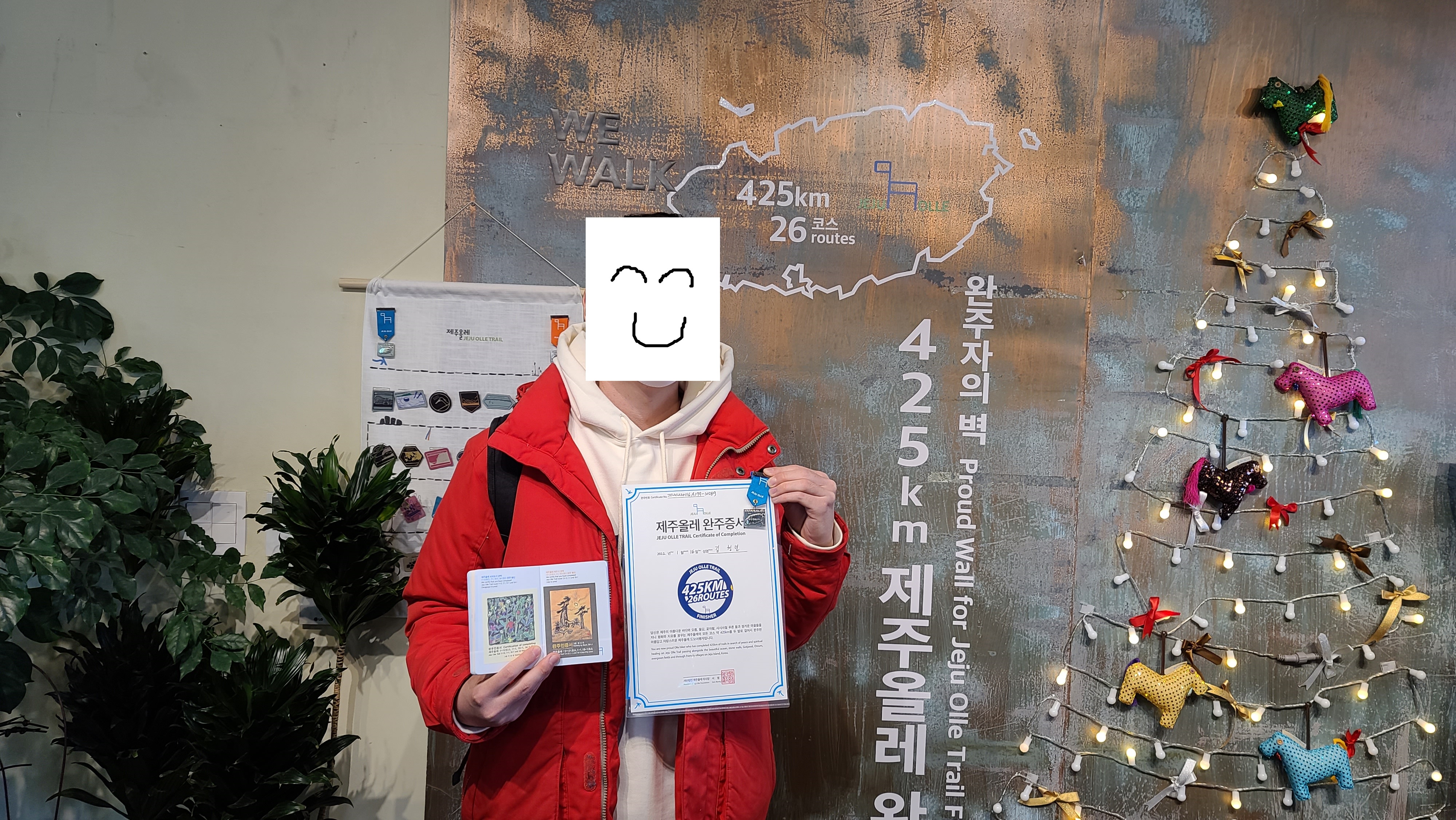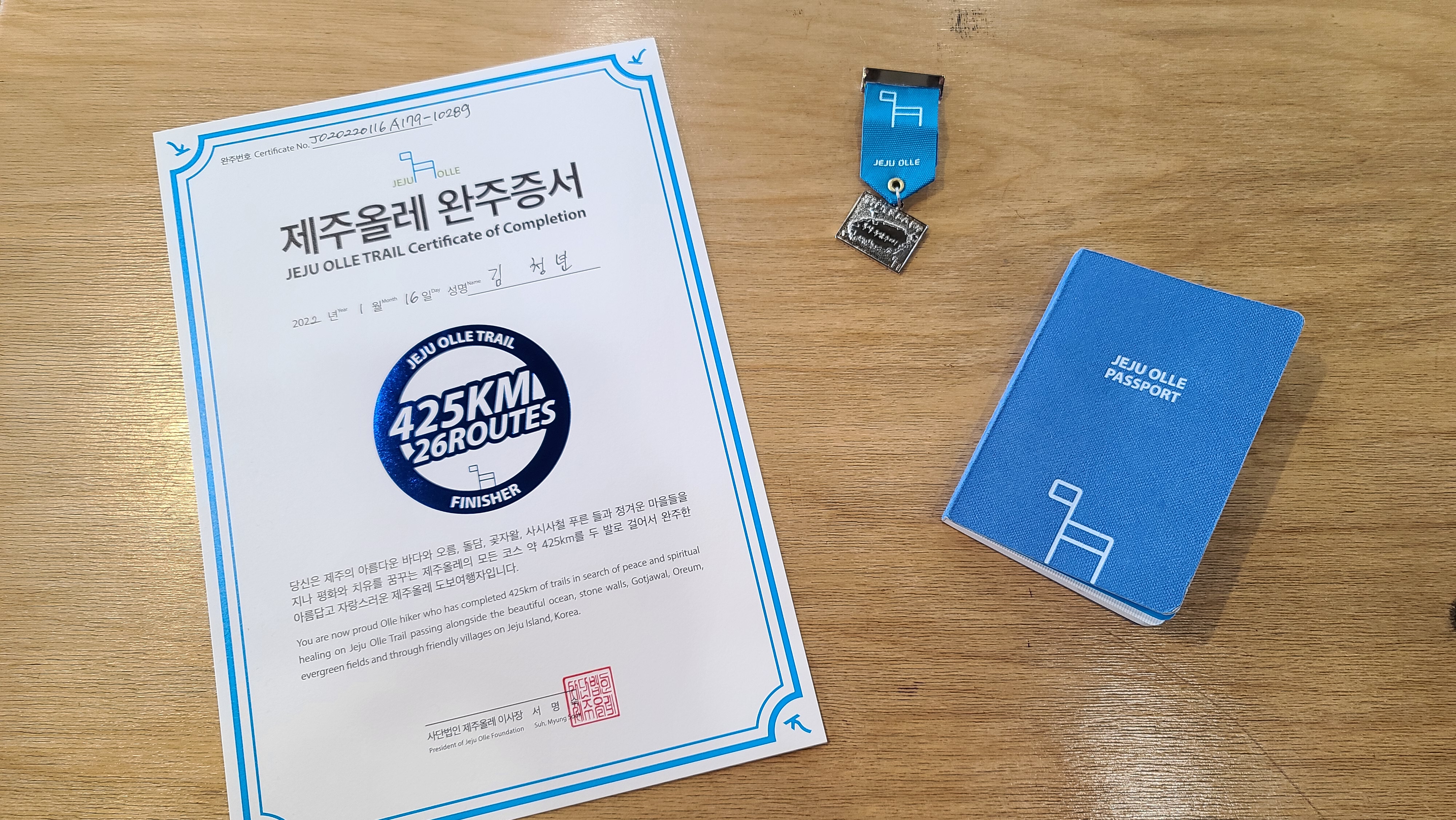 저 역시 이번 제주도 여행에서 올레기를 모두 다 돌고 완주증서를 받았습니다.