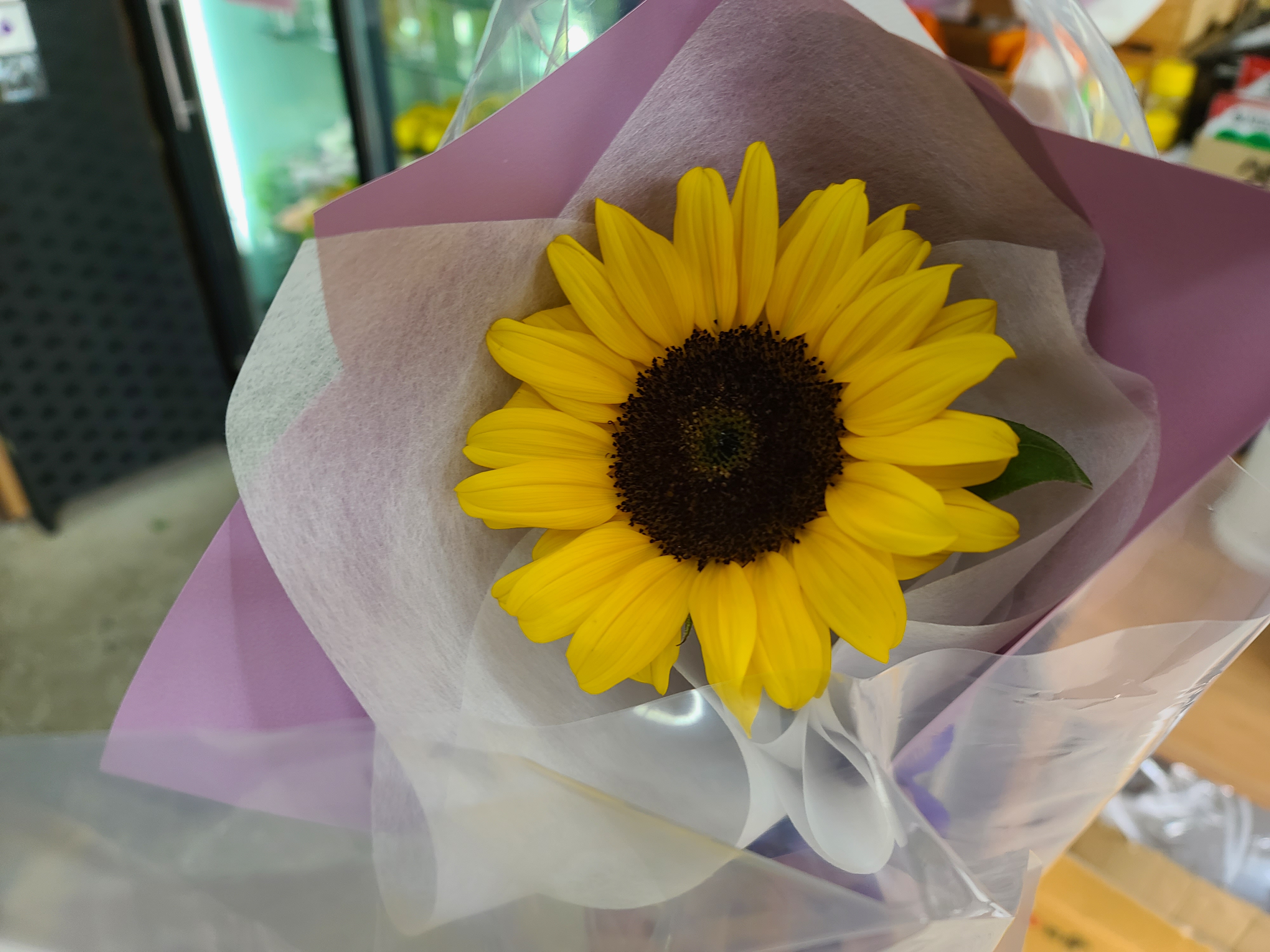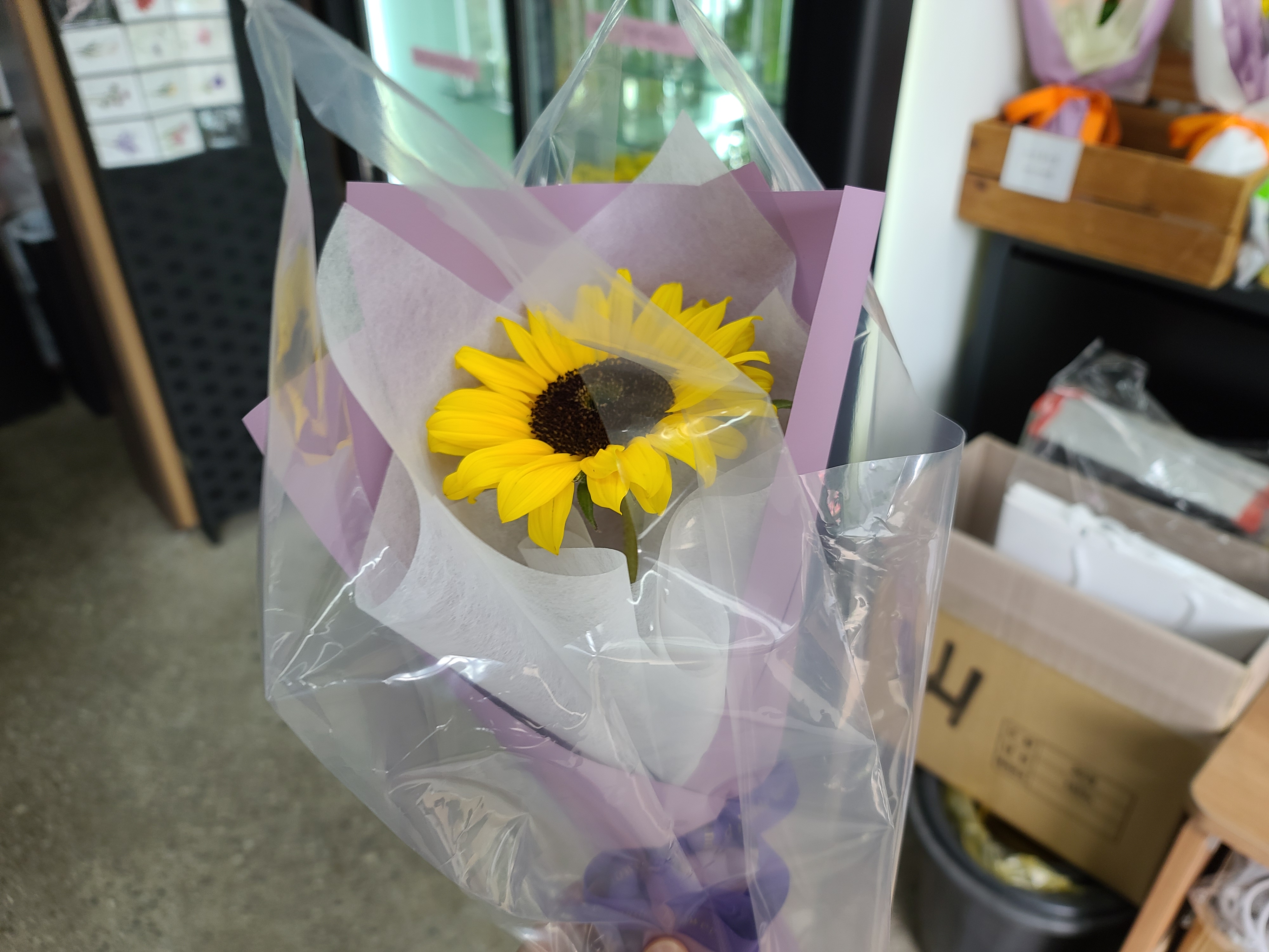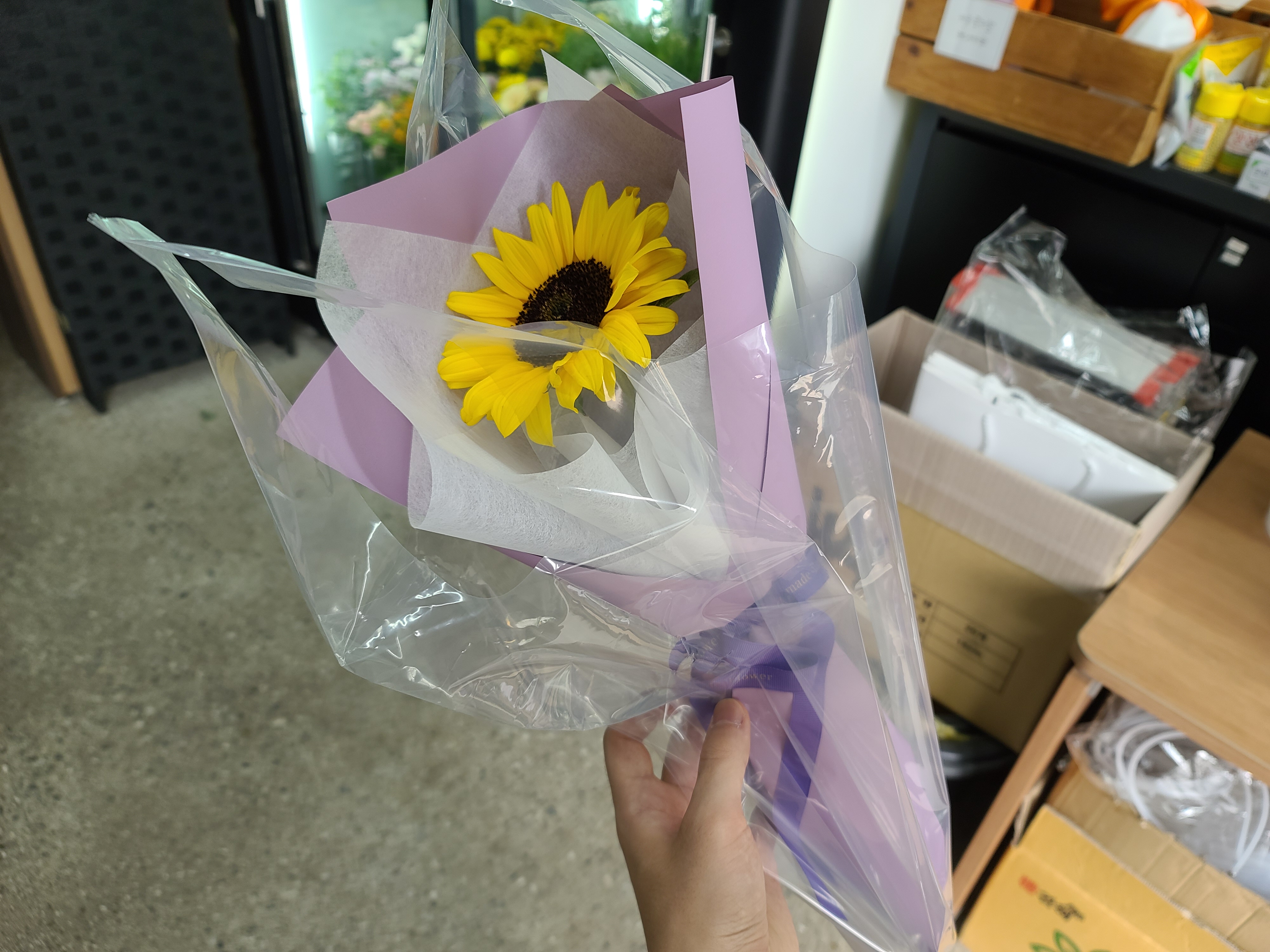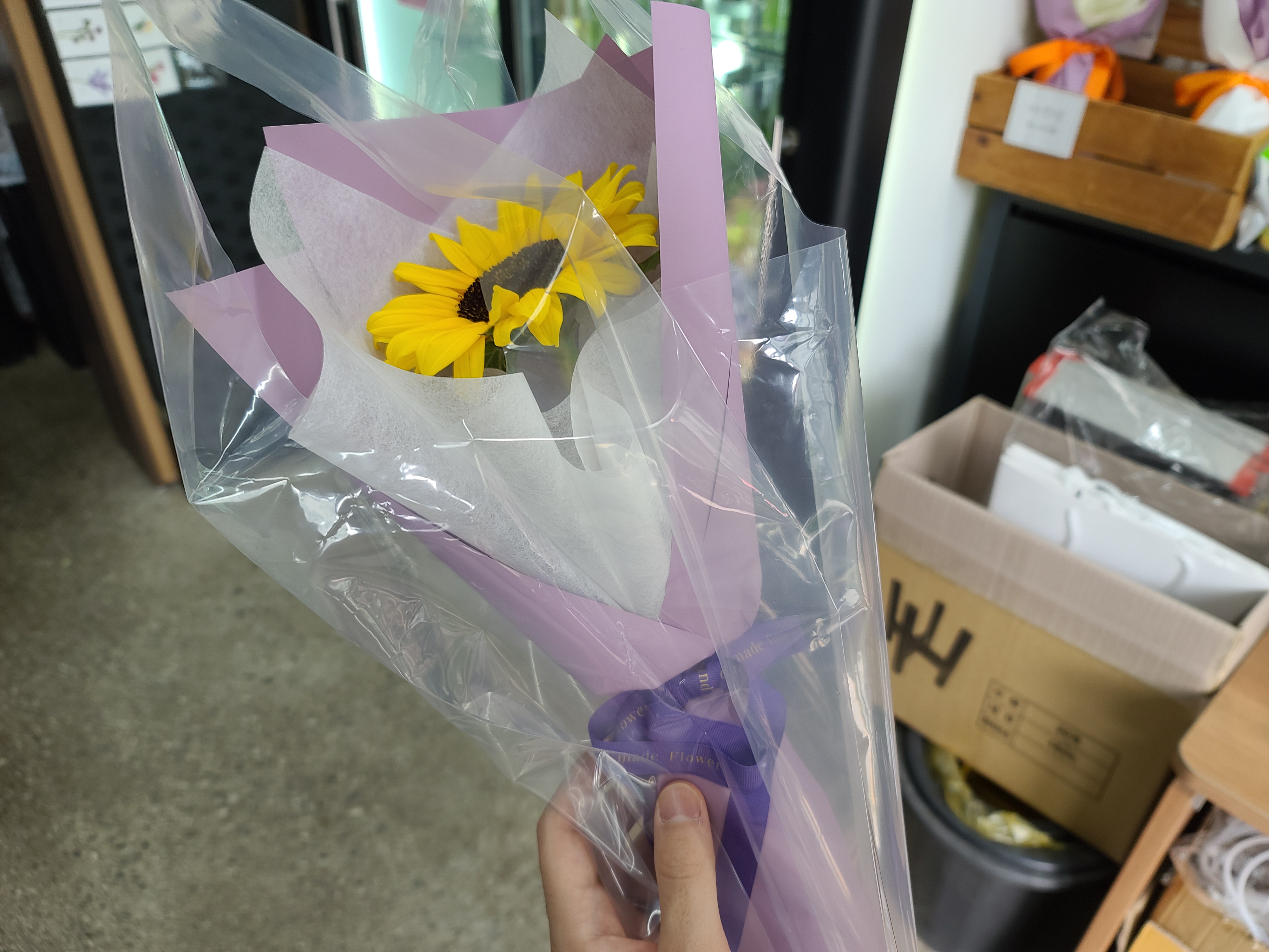 저는 해바라기 한 송이를 살 예정이었기 때문에 사장님께 해바라기 한 송이를 포장해달라고 말씀드렸습니다.
