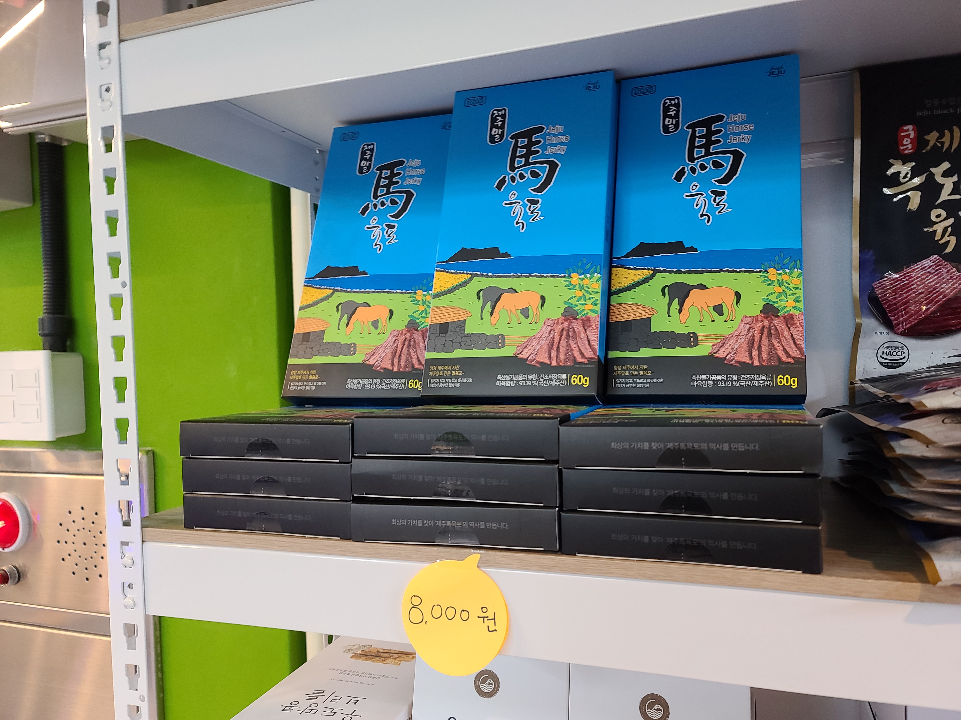 인터넷에서도 제주 말육포를 1개에 8,000원에 파는 것을 보면 아마 다른 관광지나 시장에서도 8,000원에 구매를 할 수 있지 않을까 싶습니다.