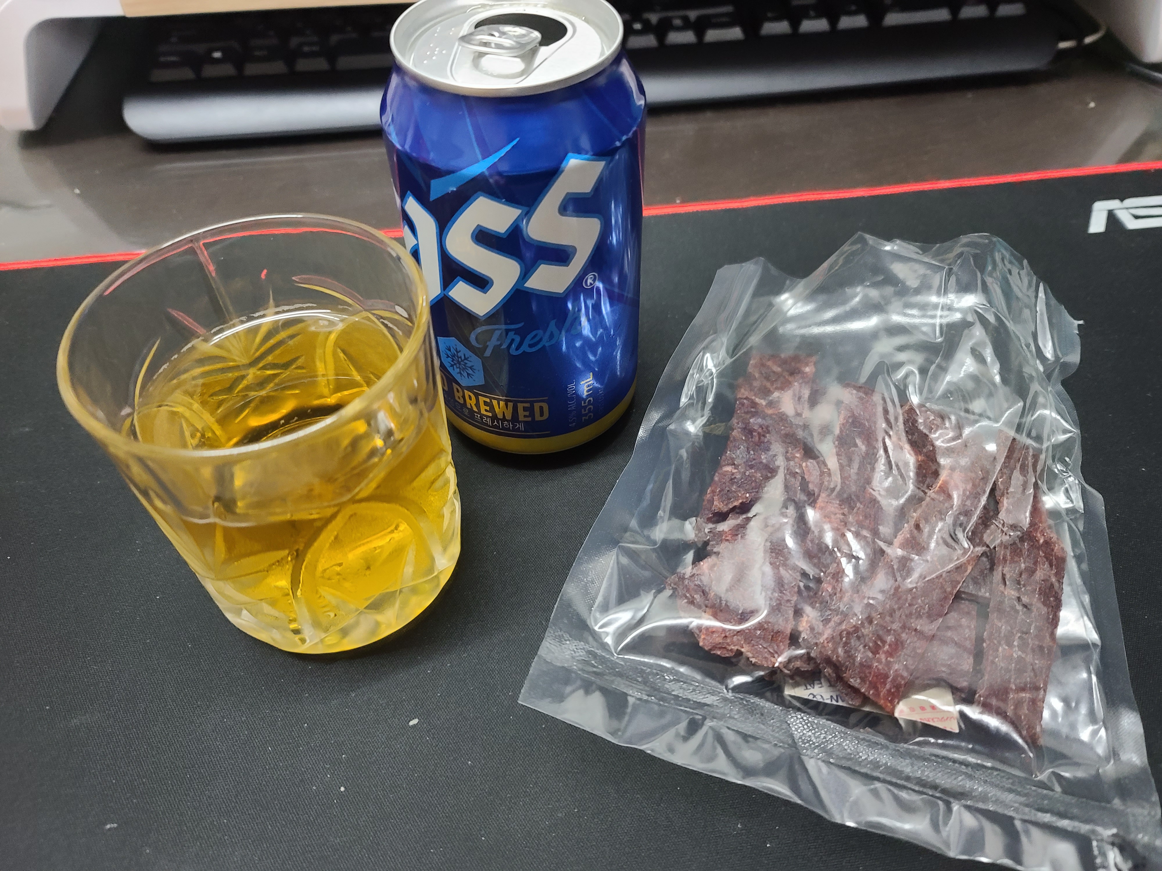 저는 육포의 단짝 친구인 맥주와 함께 즐겨보도록 하겠습니다.