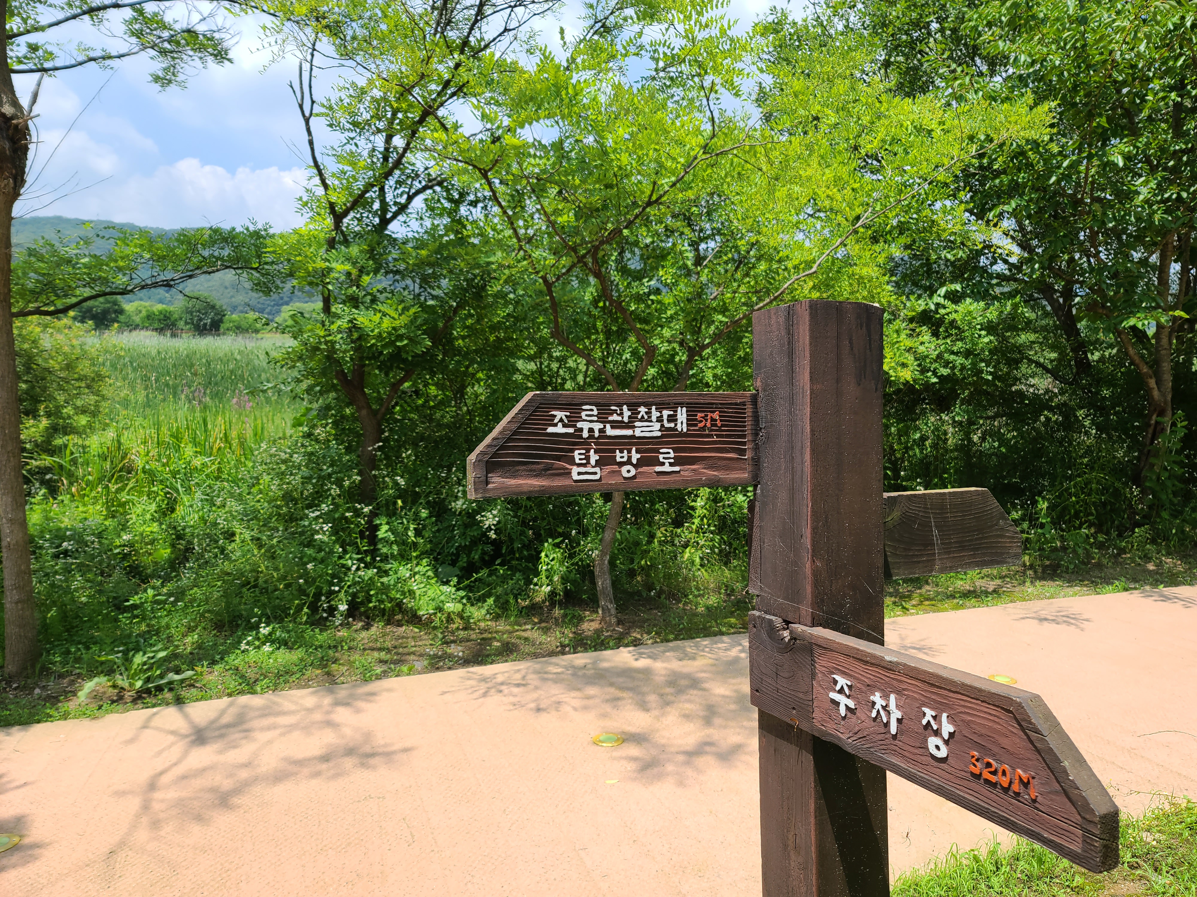 이 안내판을 기준으로 왼쪽으로 조금만 가시면 연꽃 습지가 나옵니다.