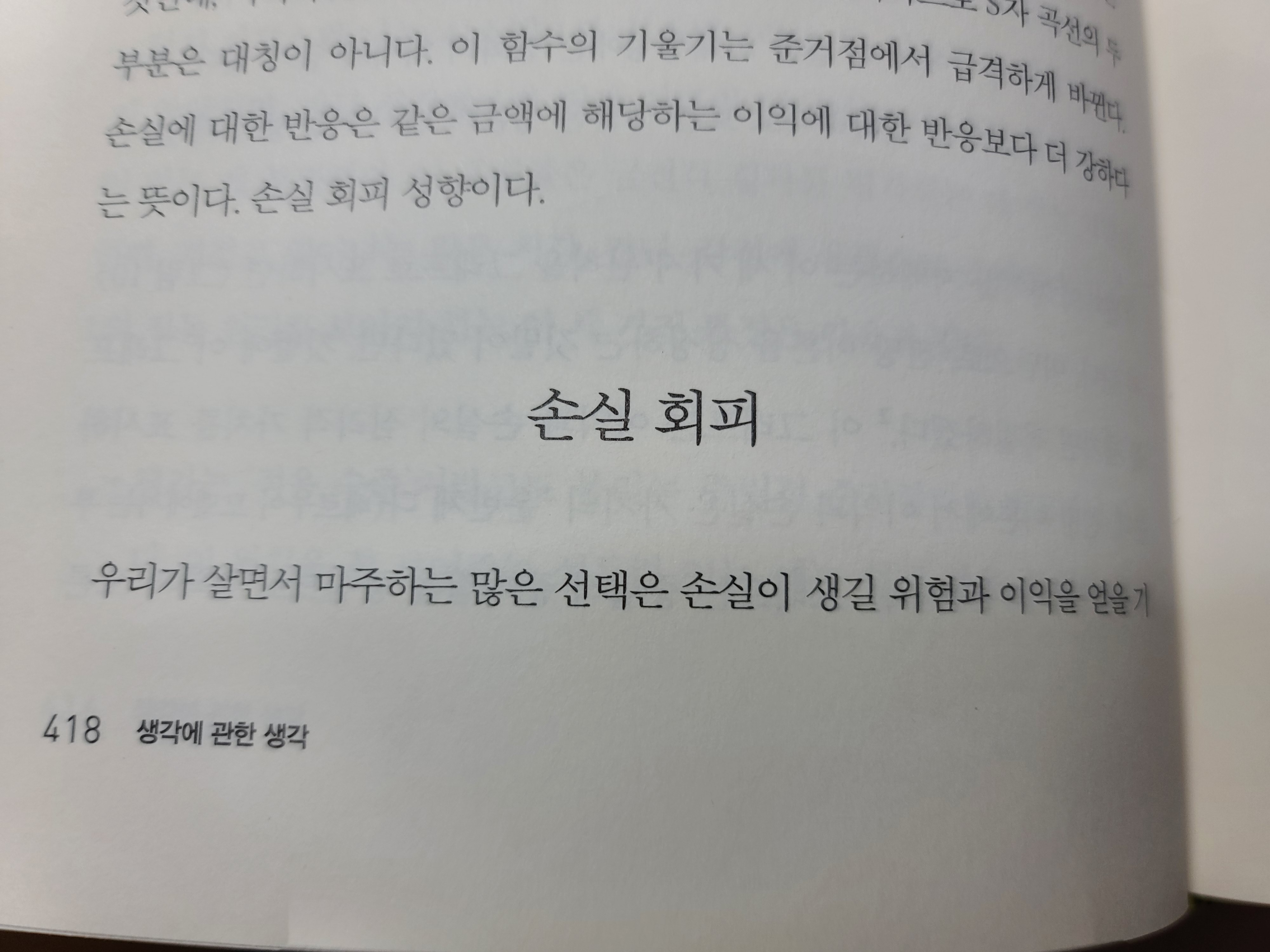 내가 이 생각에 관한 생각에서 나오는 여러 가지 개념들 중에서 굳이 손실 회피를 콕 찝어서 설명한 이유는,