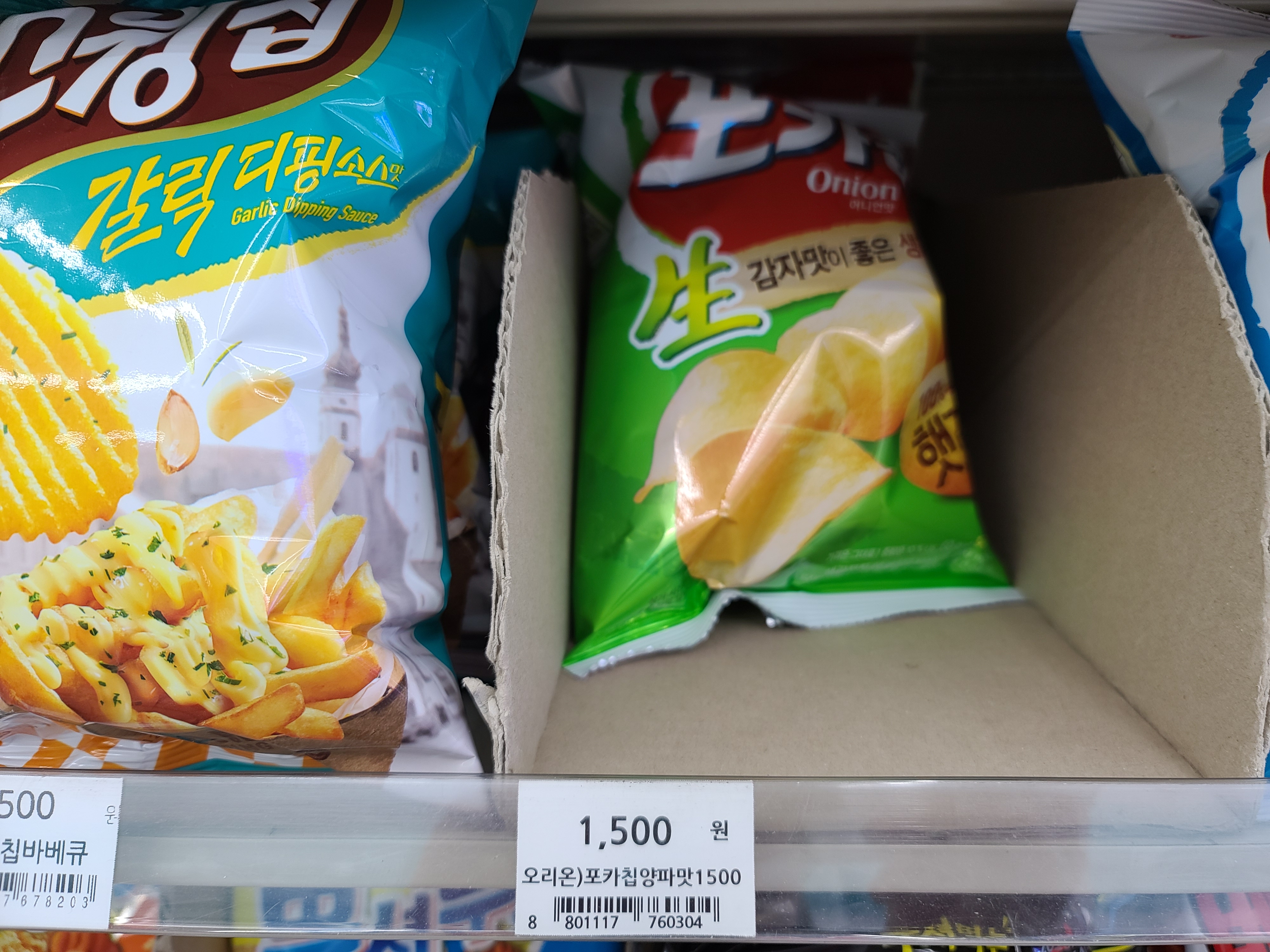 실제로 진열된 상품은 포카칩 어니언맛이라는 것을 알 수 있습니다.